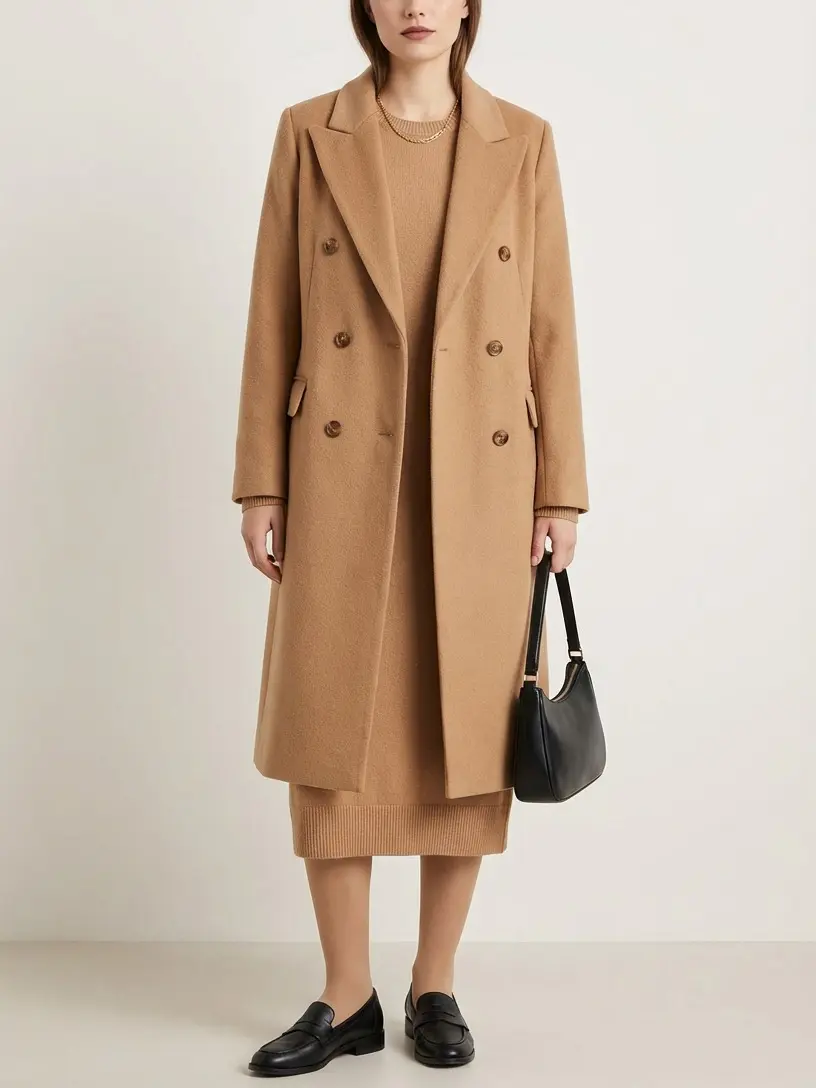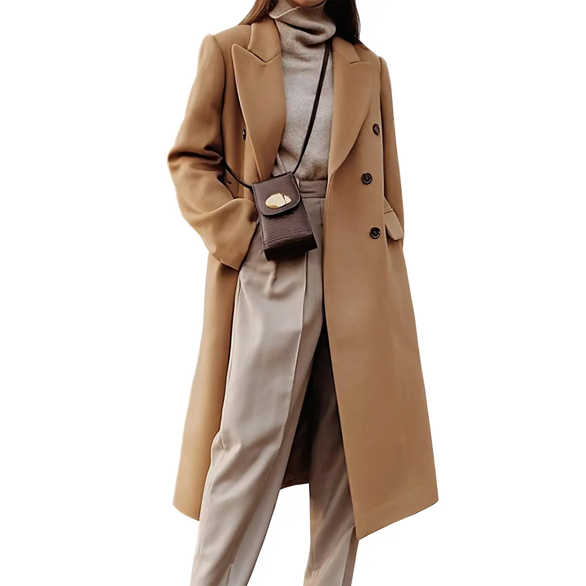 ·Features: Notch lapel collar, below the knee length, long sleeve, double breasted front, side pockets