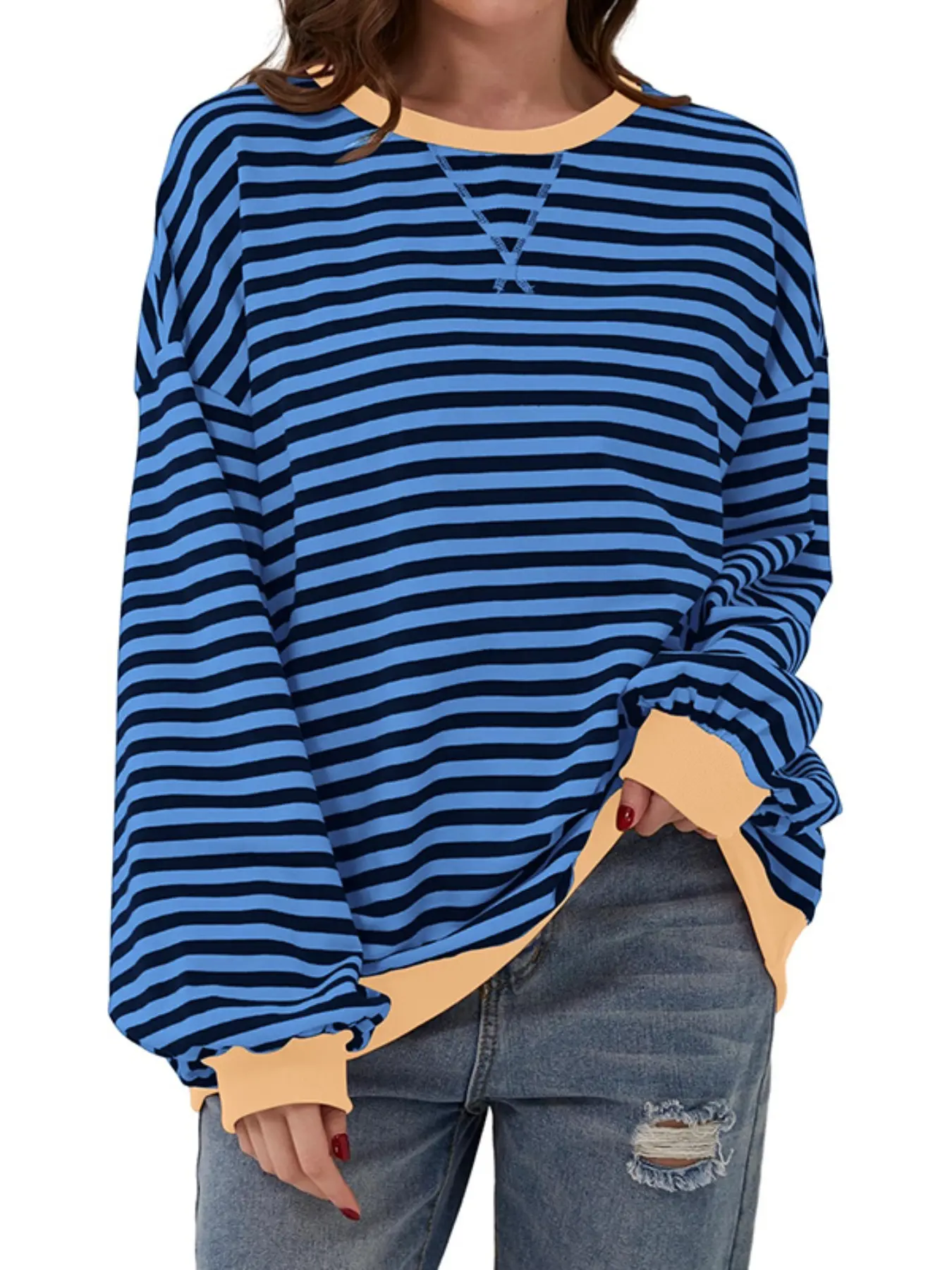 Women's Loose Fit Casual Color Block Striped Long Sleeve Pullover Hoodie, Fashionable All Season Wear, Stylish Daily Women's Clothing #hoodies #zipuphoodie #pacsunhoodie #halloweenhoodieblanket #asymmetrichoodie #oversizedlongsleeve #prettygardensweatsuit #longsleevejumpsuit #cloudziphoodie #weightedhoodie