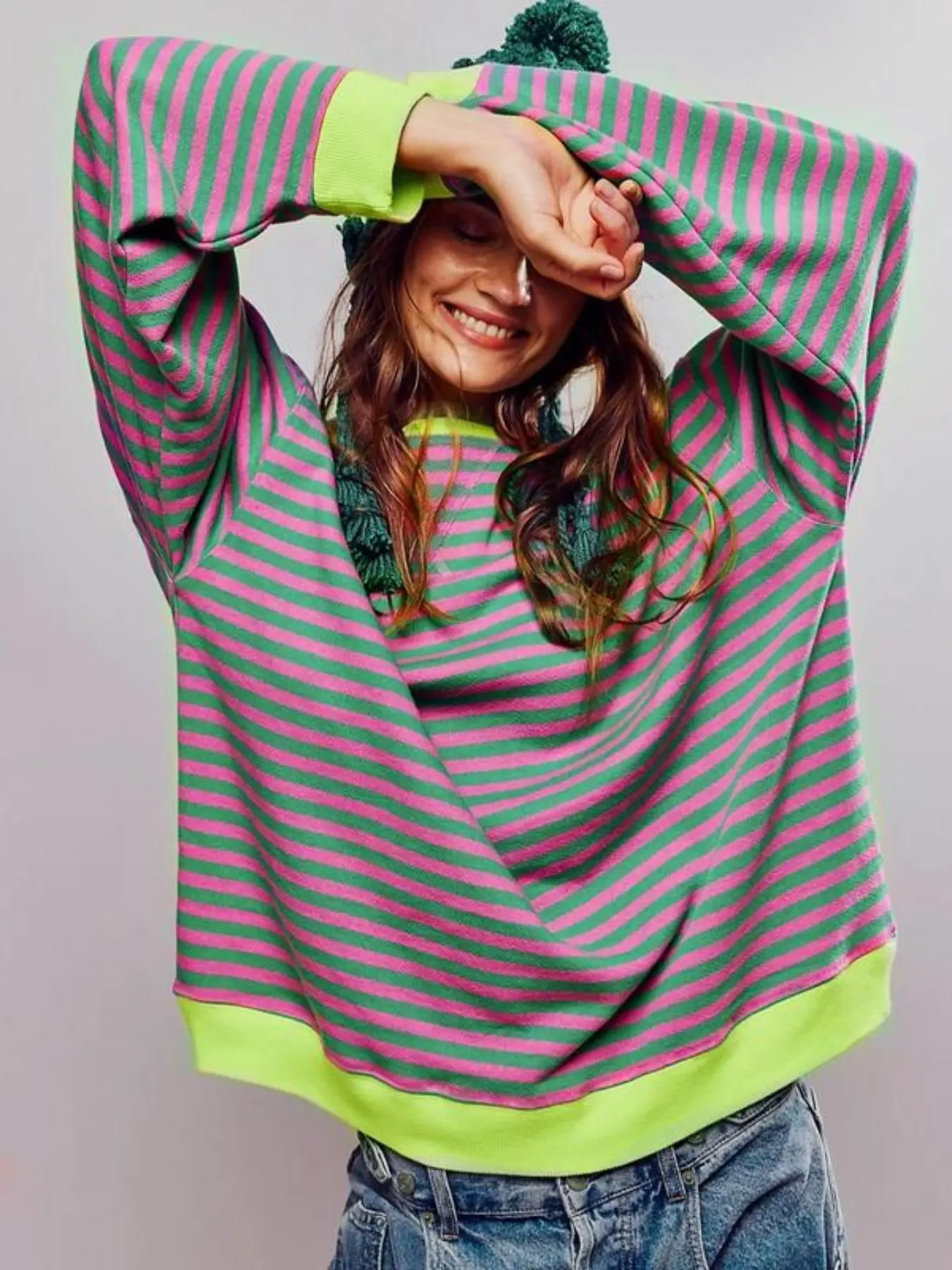 5. Women's Loose-Fit Casual Colorblock Striped Long Sleeve Pullover Hoodie, Fashionable All-Season Wear, Stylish Daily, Womenswear