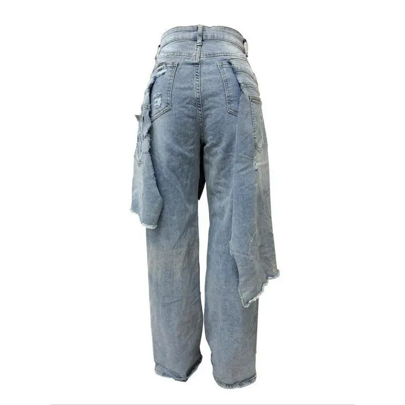 5. Women's Loose Fit High Street Patchwork Casual Pants, New Fashion Style, Hip-Hop Ripped Design, Long TrousersRagq