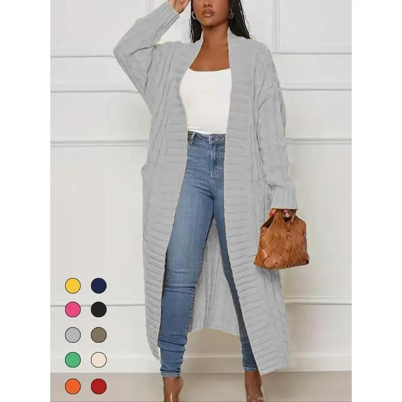 5. Women's Solid Color Textured Drop Shoulder Pocket Longline Cardigan, Casual Open Front Knitwear for Fall & Winter, Women's Knit Clothing for Daily Wear, Sweaters for Women, Trending Clothing Women