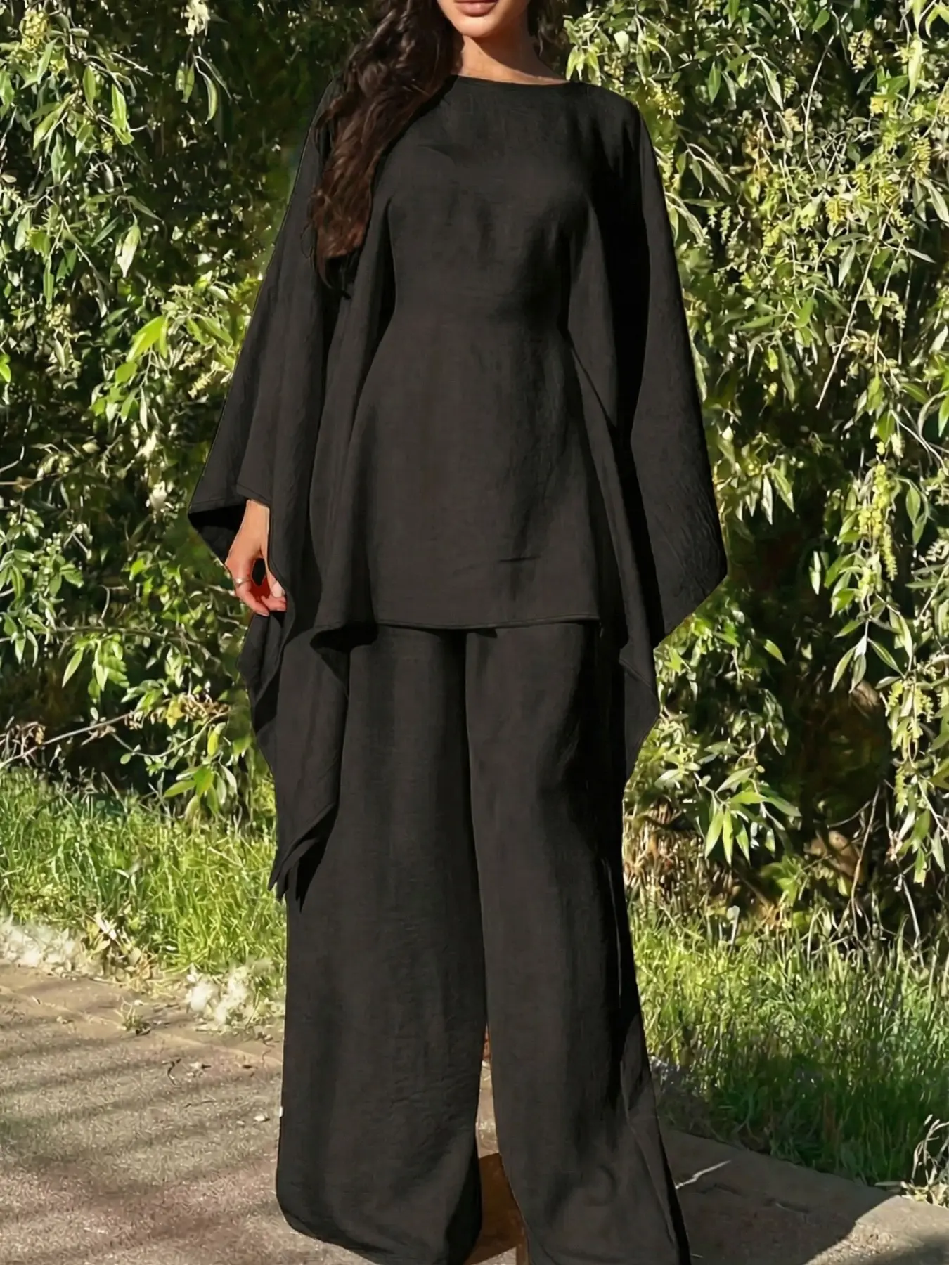 【Wide-Leg Pants】: Incorporates wide-leg trousers that promote airflow, offering a relaxed feel and stylish silhouette.