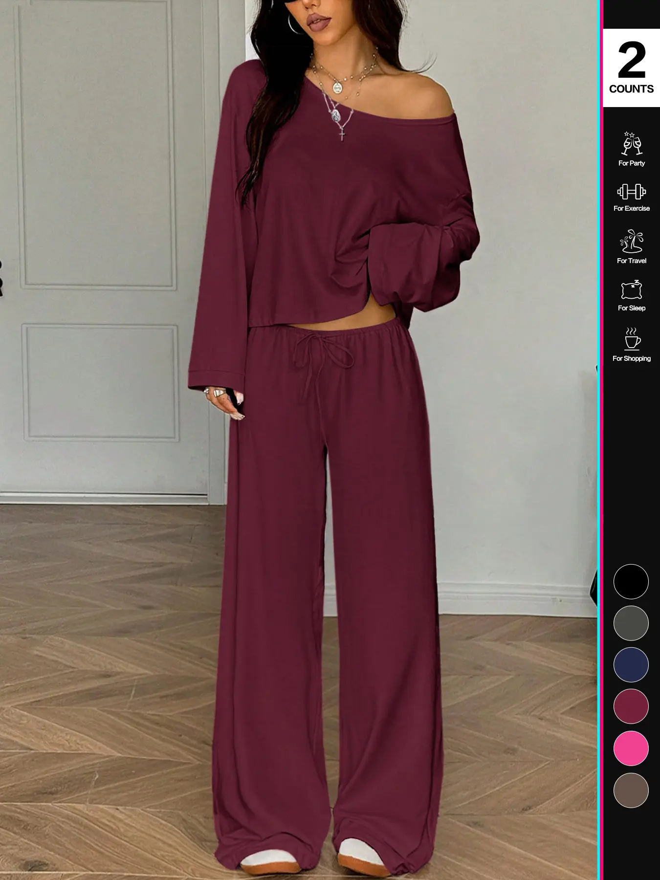 #OffShoulderSet #LoungeWearWomen #WideLegPants #TioPieceOutrit #tiktokshopblackfriday