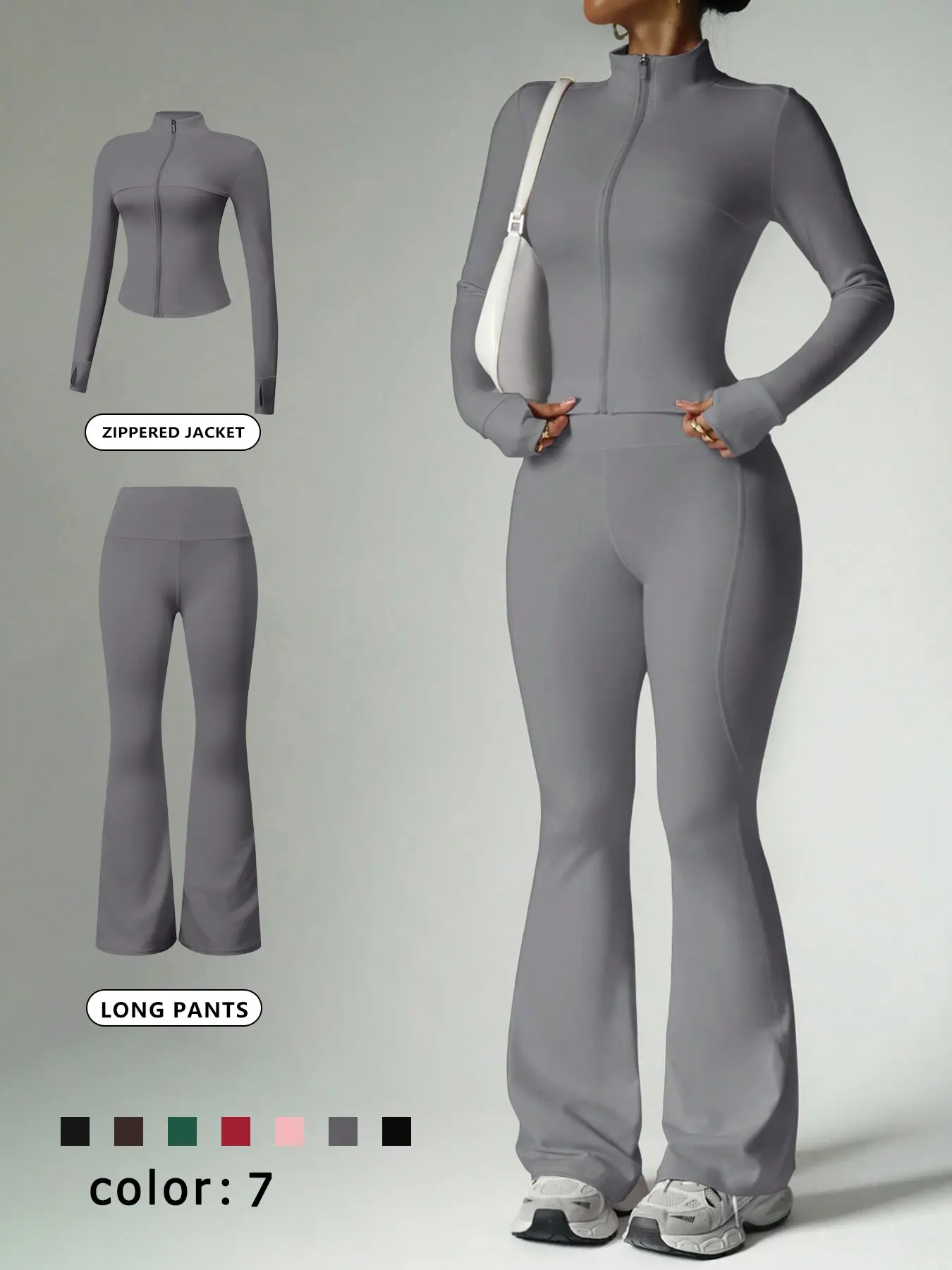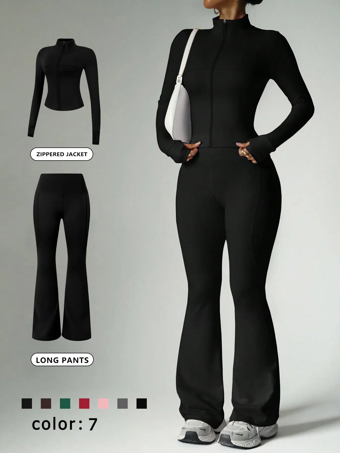 This outfit is super cute, the top is more cropped, and the pants do fall a little so not really good for working out! But just to wear out it’s super cute!