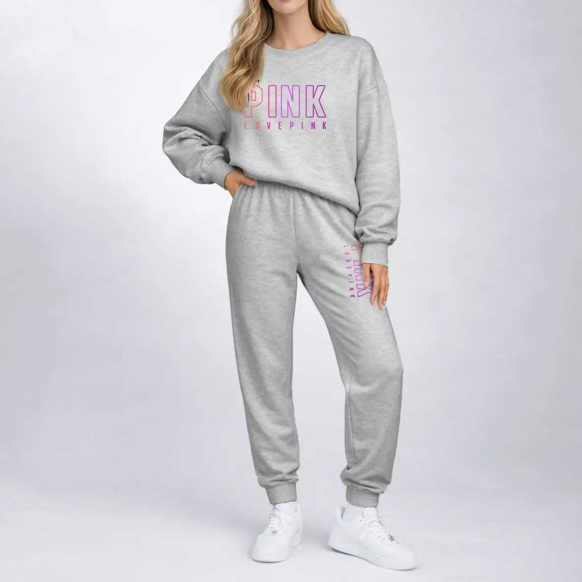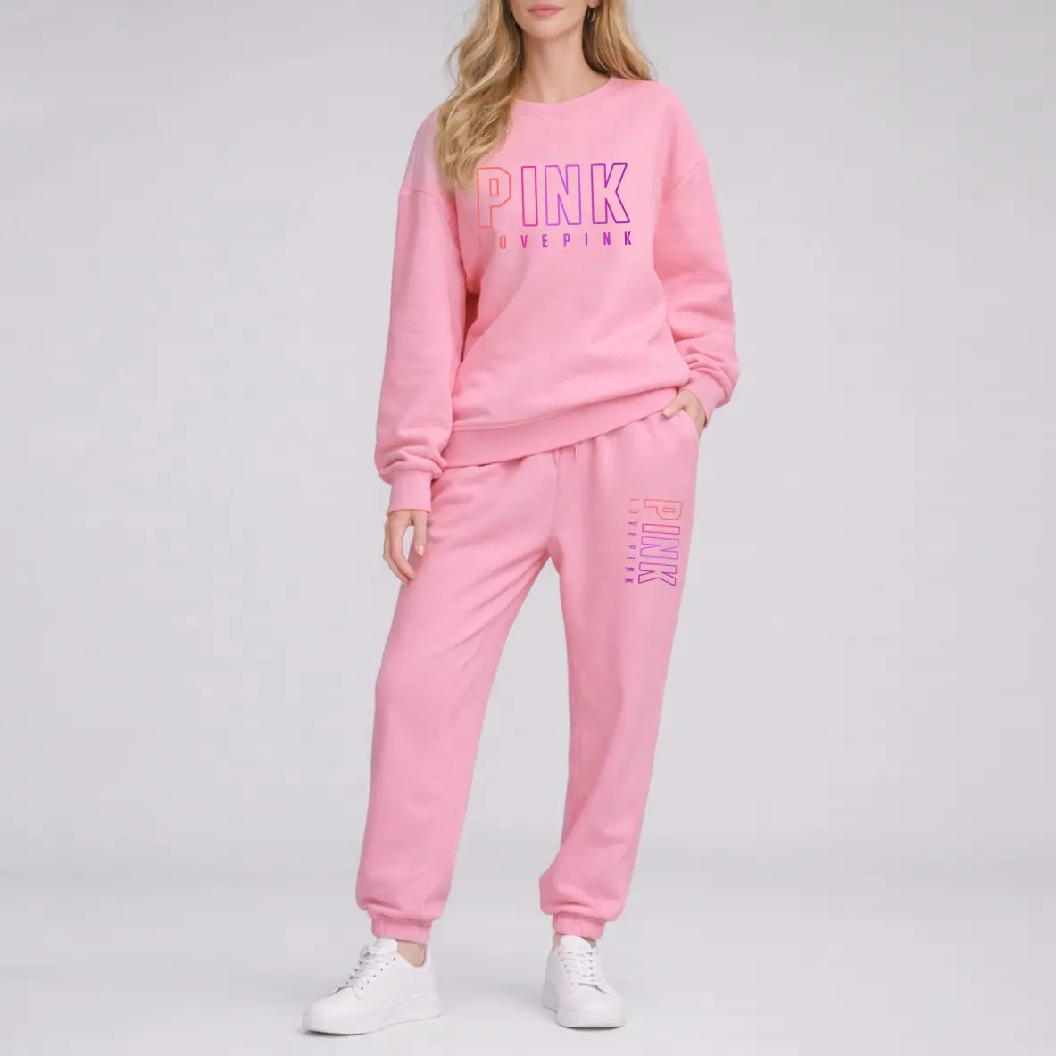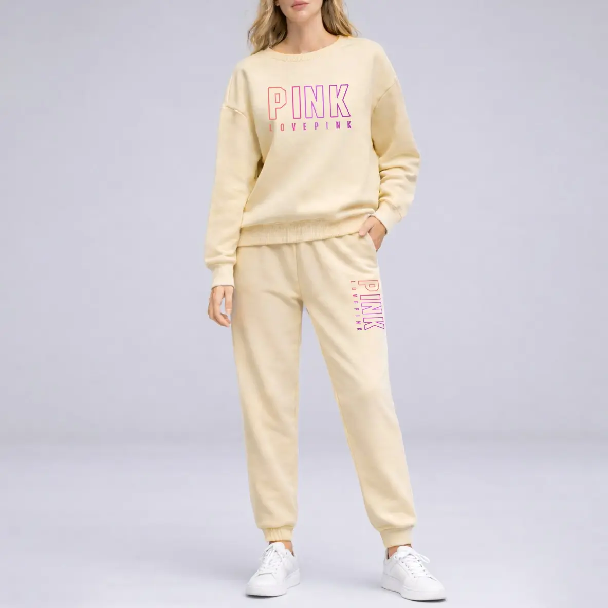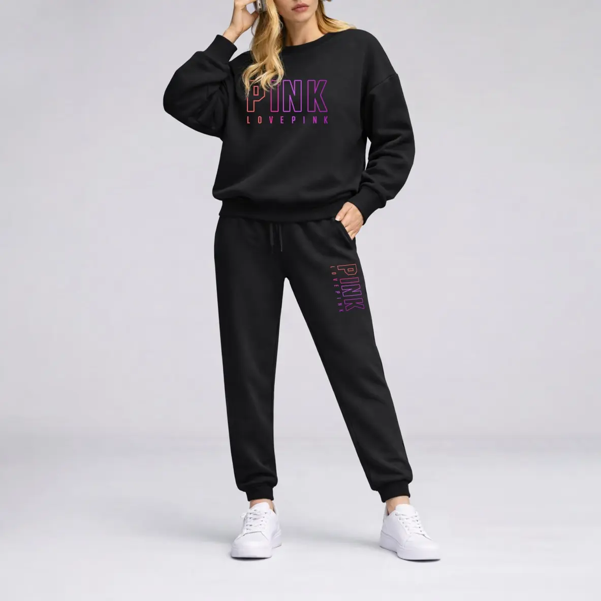 Women's Crewneck Sweatshirt & Drawstring Sweatpants SetMaterial: 100% Polyester
