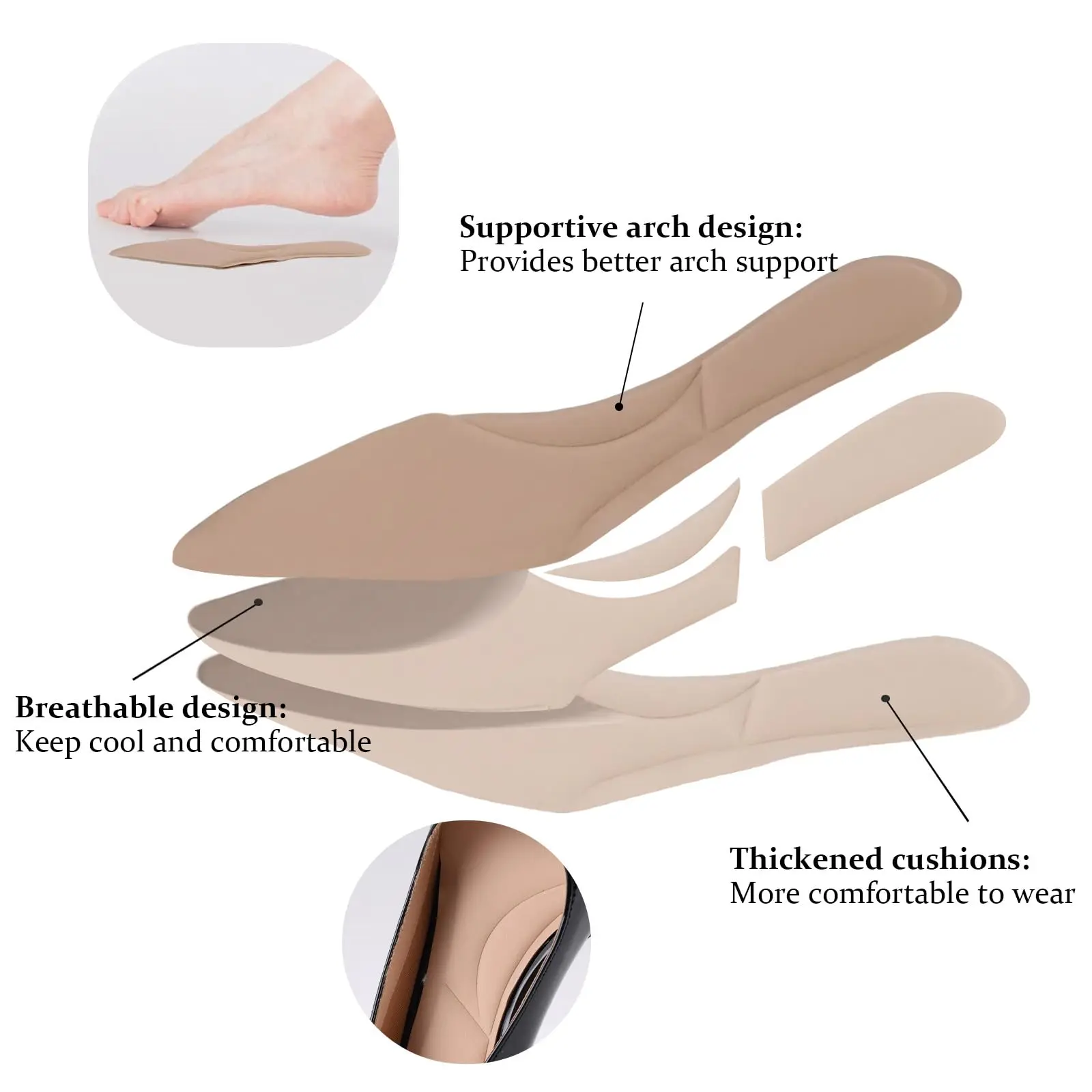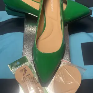 Giving sassy flat vibes, arrived quickly, as pictured, GREAT color. Fit was true to size, a little stiff but was expecting that based on the material. They were well packed out, and they came with ball and heel pads which was a nice surprise.