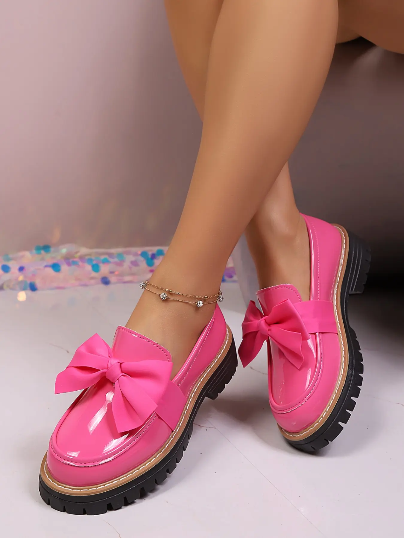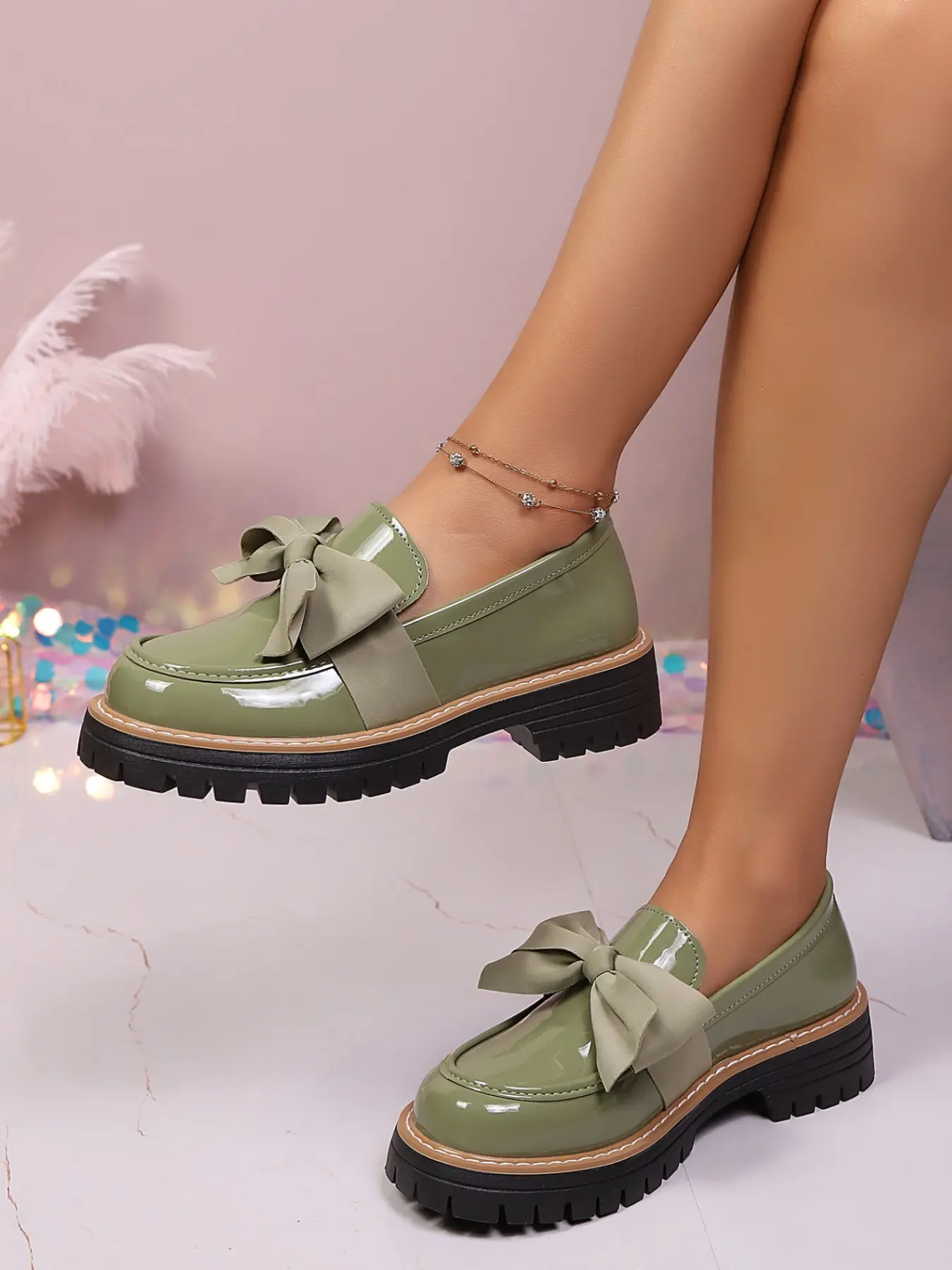 Bow chunky loafers #comfyshoes #loafers #loafershoes #sliponshoes #flatshoes
