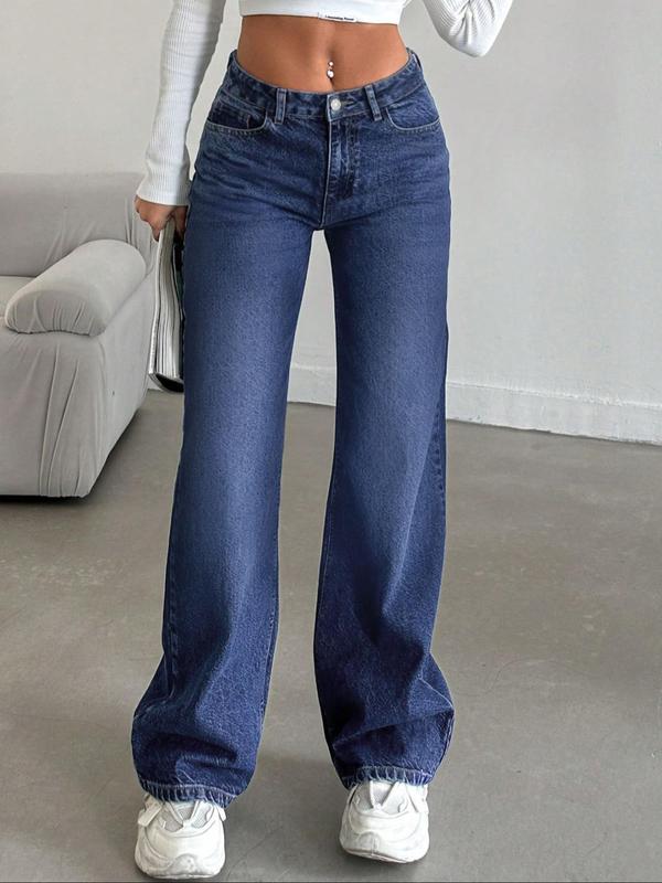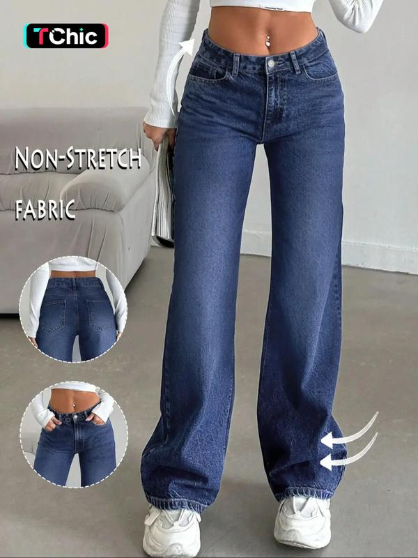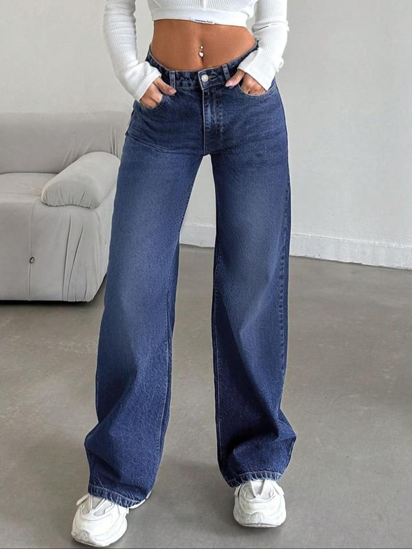 Women's Low Rise Nondistressed Jeans, Street Style Retro Loose Fit Straight Jeans, Fashion Washed Jeans for Daily Wear