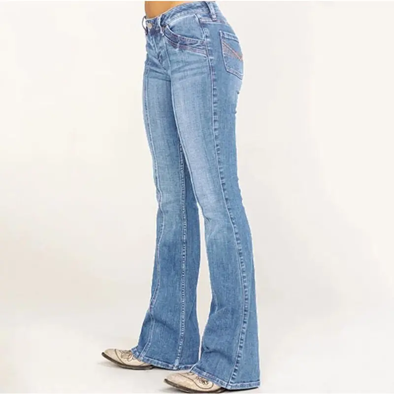 5. Women's low waisted flared pants, curved mid waist jeans