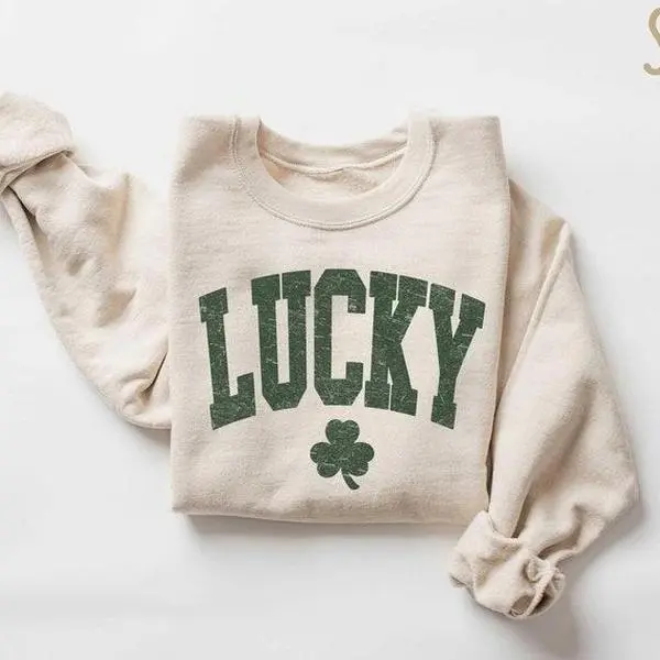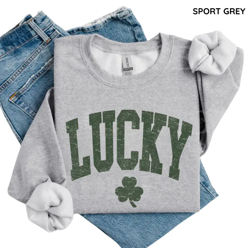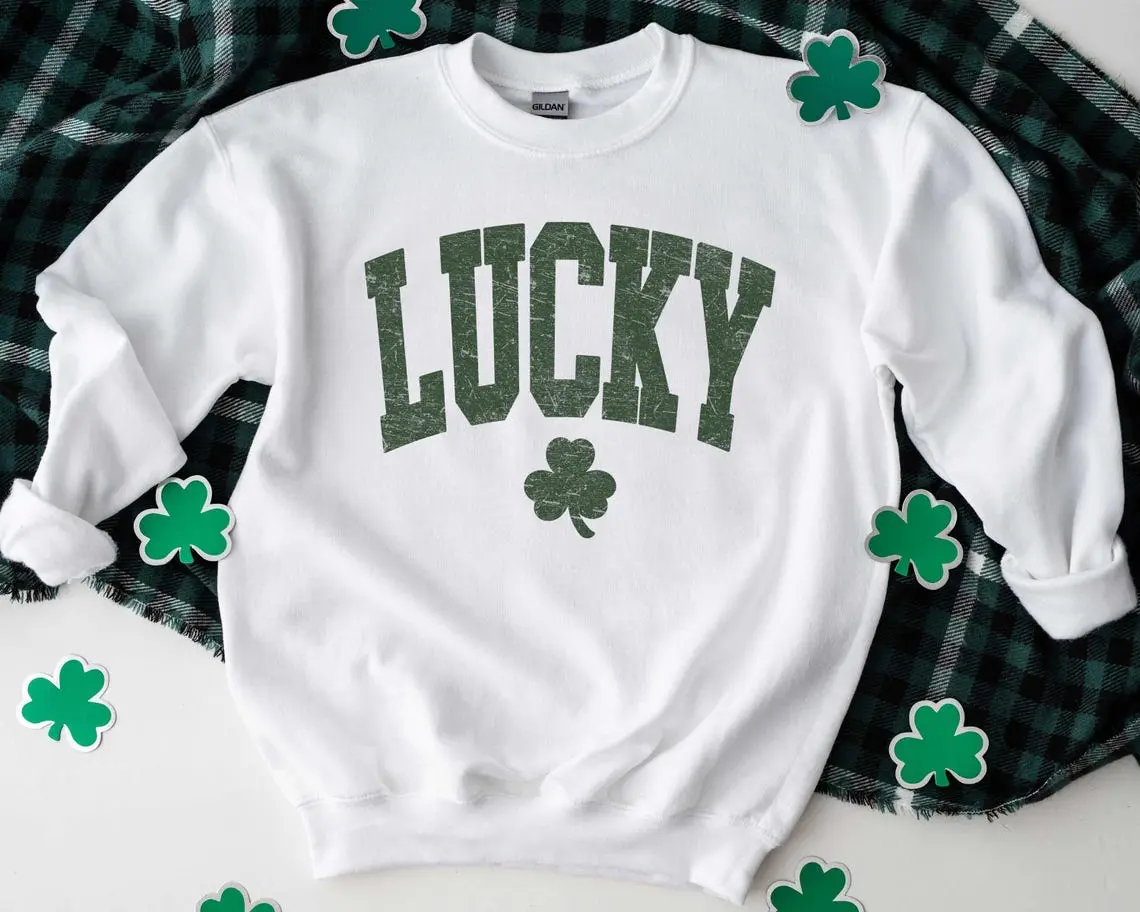 [GILDAN] Women's Lucky Sweatshirt, Cute Shamrock Shirt, Happy St Patricks Day Shirt, St Pattys Day Outfit, Lucky Outfit