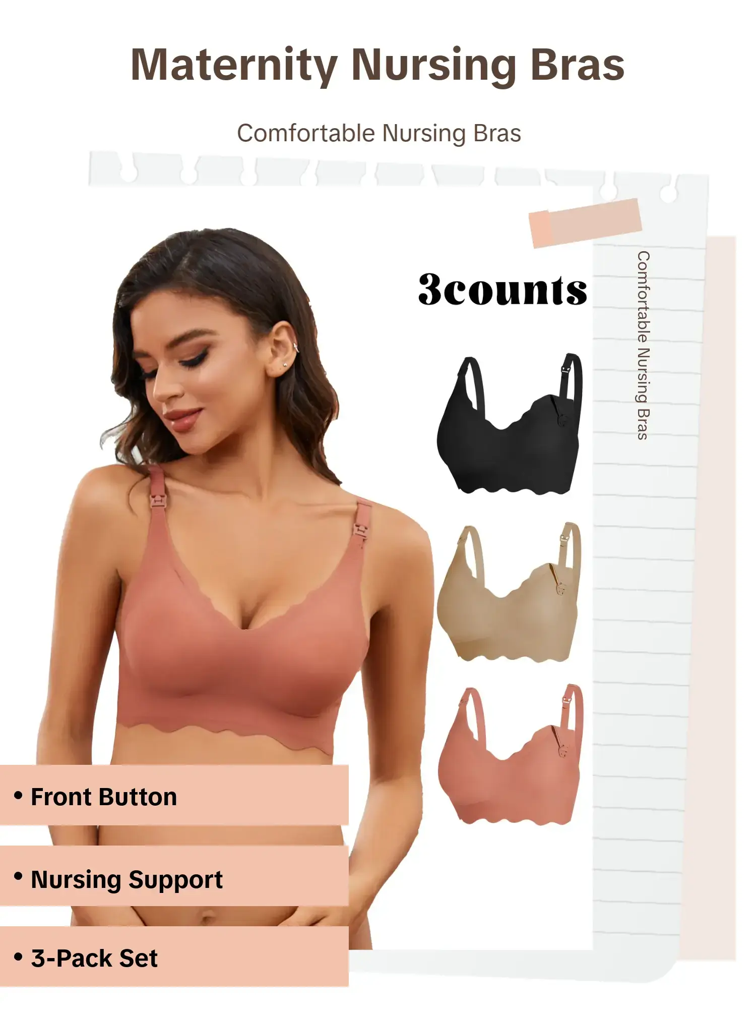 【3-Pack Set】: Includes three bras in this set, providing you with multiple options for everyday wear while nursing.