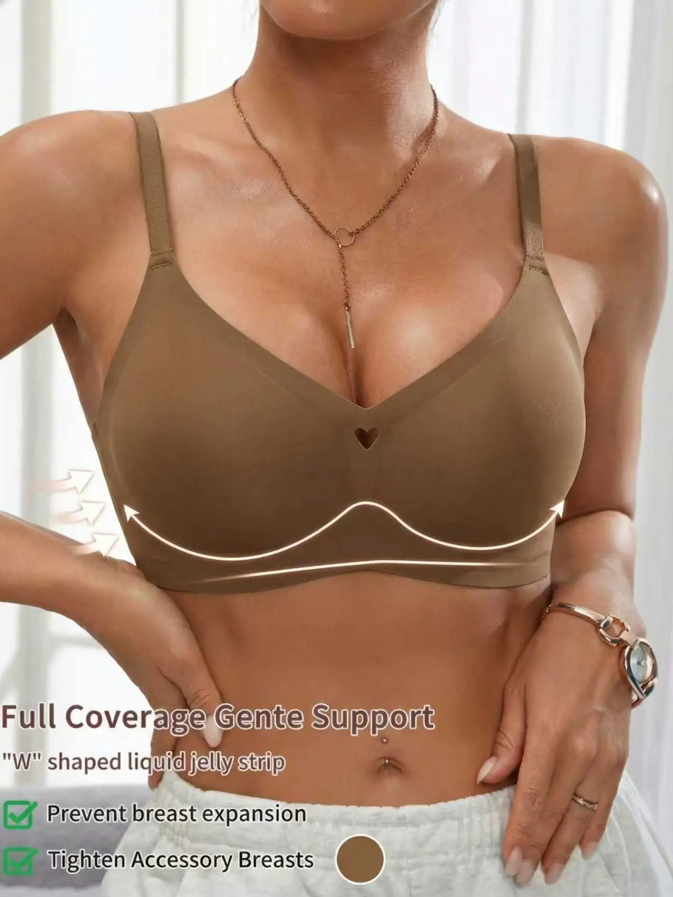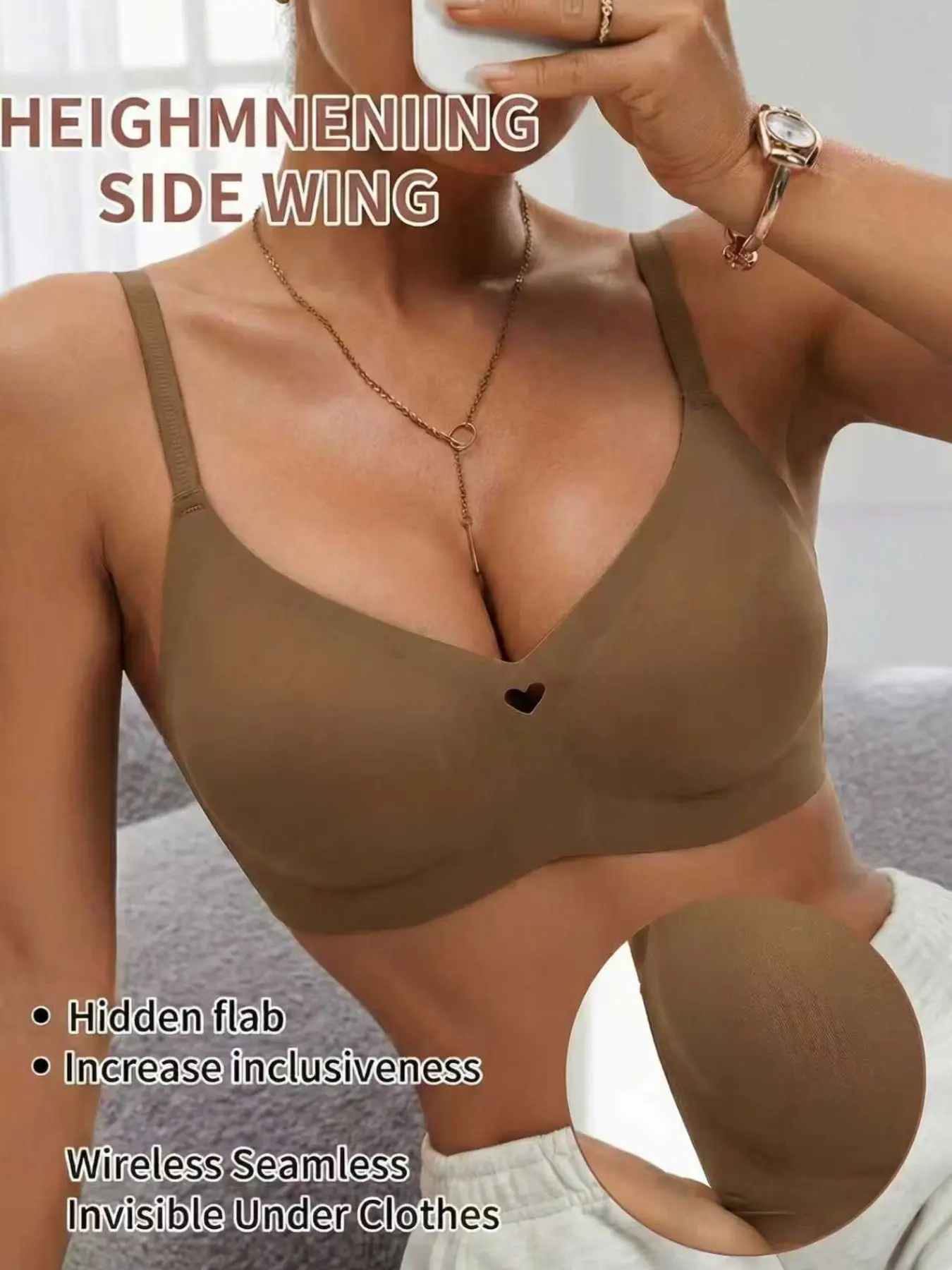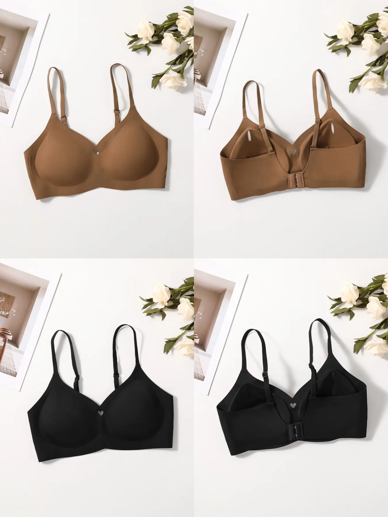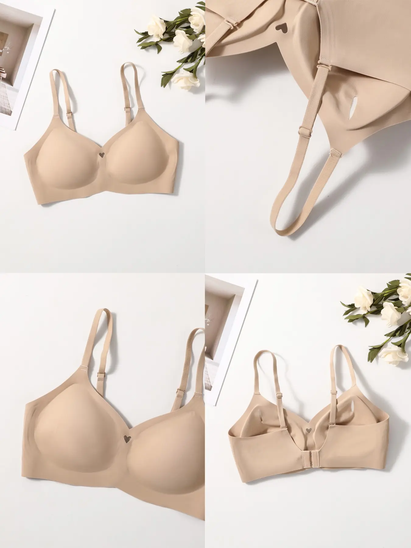 5. Heart Cut-Out Bralette Set, Adjustable Straps, Seamless Comfort, Full Coverage, Casual Style, All Seasons, Fitted Design