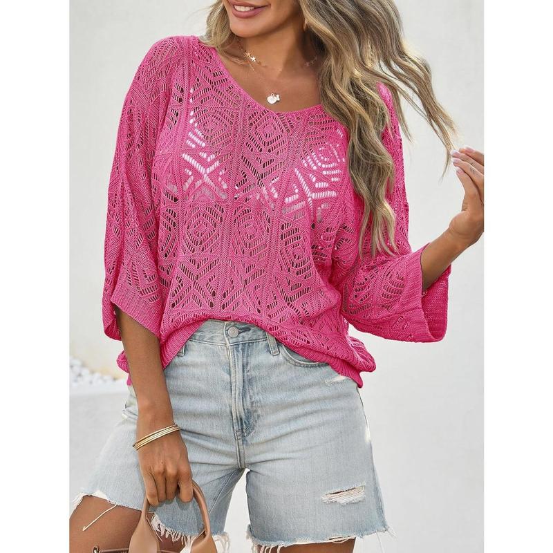 Features: Short sleeve, hollow out, mesh tops, fishnet knit, off shoulder, scoop neck, sexy fishnet, see through, loose fit, solid color, 3/4 length sleeve womens tops. You can wear it one shoulder or up for a sexy and charming look.