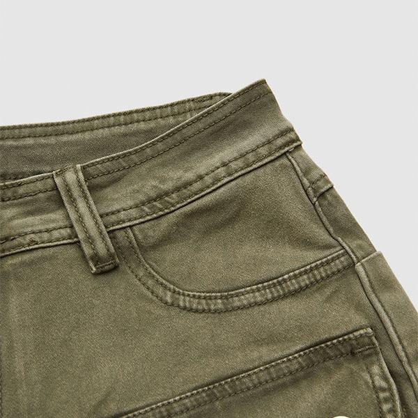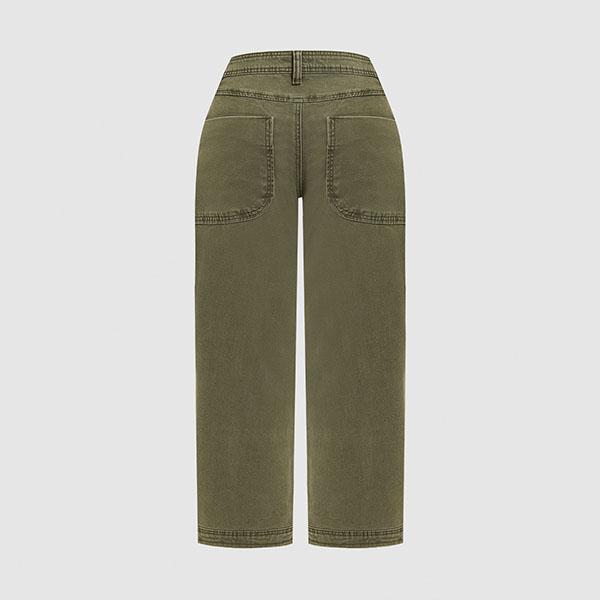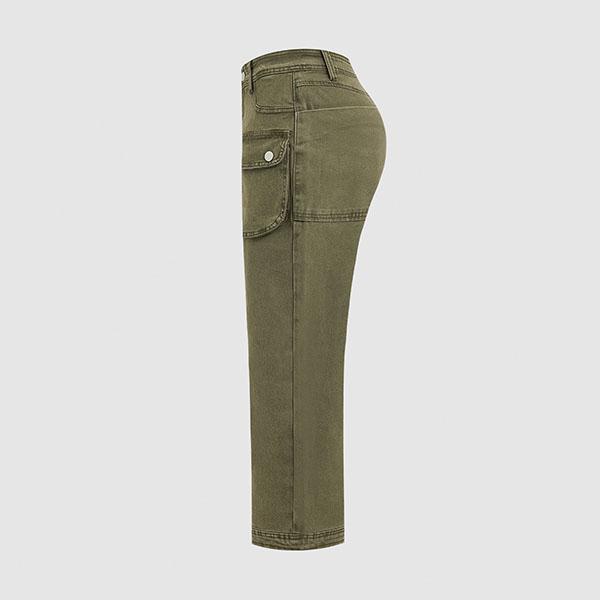 Flamingals Solid Seam Front Flap Pocket Mid Rise Straight Leg Crop Cargo Pants Women's Fashion Streetwear