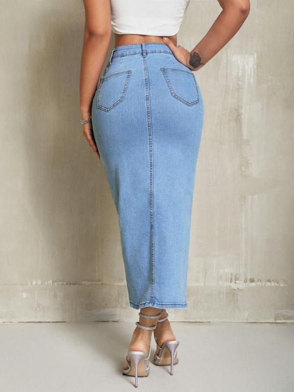 Women's Casual Elastic Front Slit Denim Skirt, Fashionable Comfort Design, Perfect for Daily Wear, Multifunctional Stylish Item