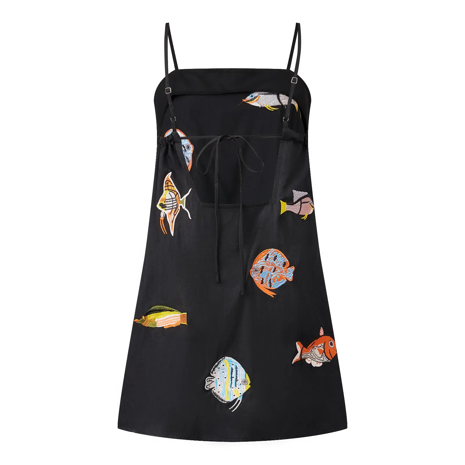 This dress is perfection!! The open back, the fish are fully embroidered and it looks way more expensive than it is!