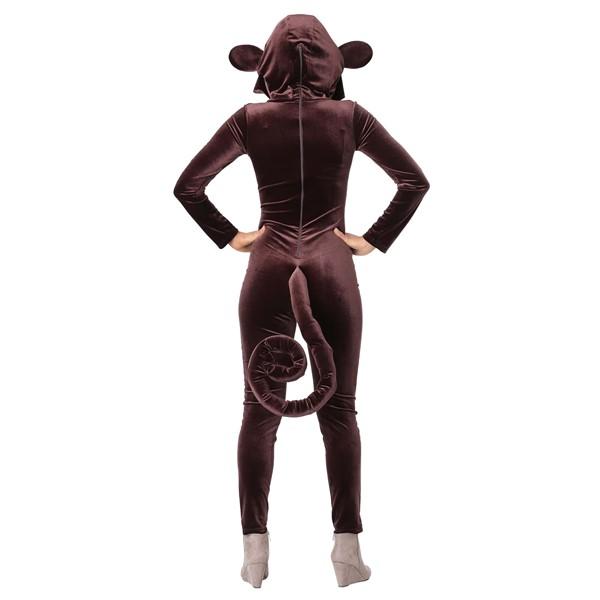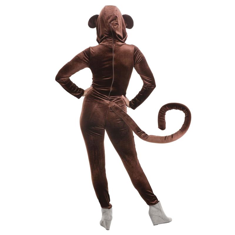 Let the fun go free when you step into the world of the monkey thanks to this exclusive Monkey Around Jumpsuit for women! Our highly trained in-house costume designers have blended the complexity of genetic science with the comfort and ease of a cozy jumpsuit to produce this outfit. It features a back-zipped jumpsuit made of a super-soft and luxurious brown and tan minky fabric. The long tail and embroidered hood make for the perfect physical transformation into your monkey buddy. Though the real change will come when you roleplay as a funky monkey for the mischievous fun that you're looking for!