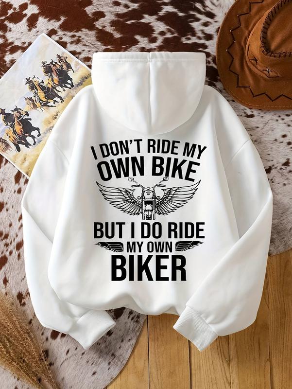 Women's Funny Motorcycle Slogan Hoodie - "I Don't Ride My But I Ride My Motorcycle" White Sweatshirt with Biker Lettering & Pocket, Motorcycle Enthusi