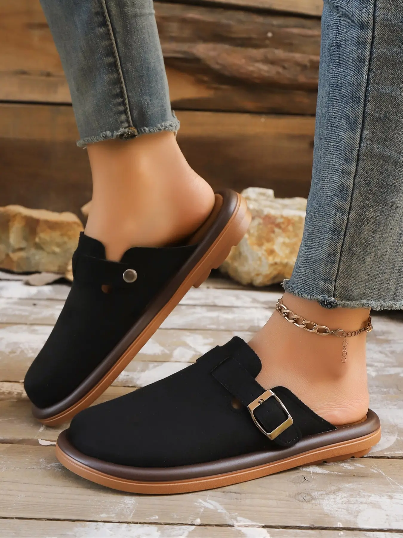 5. Women's Multi-Color Velvet Slip-On Shoes, Breathable Lightweight Clogs, Spring & Fall New Elegant Comfortable Large Size Single Buckle Anti-Slip Soft Sole