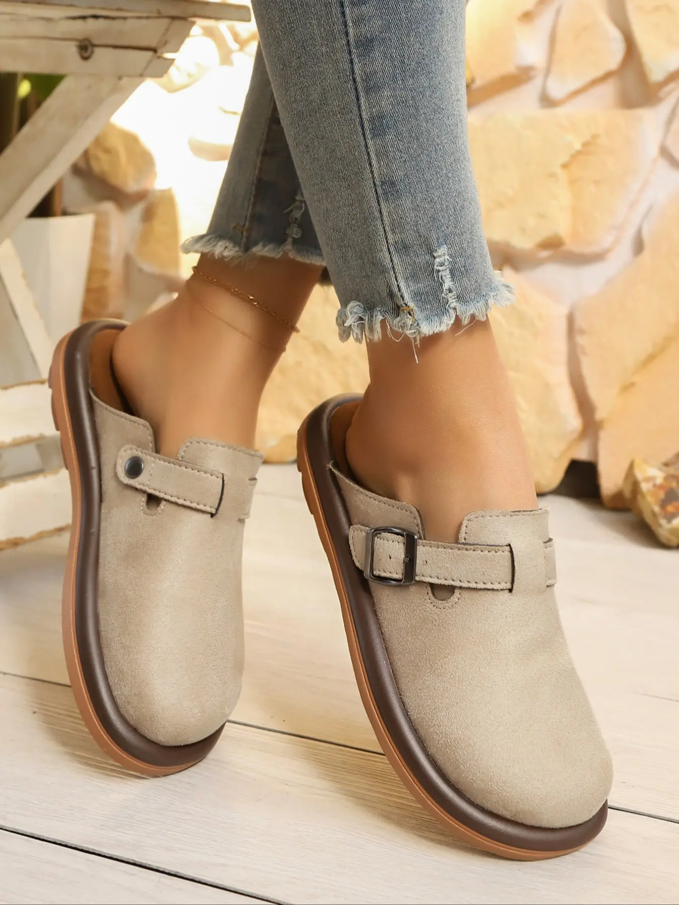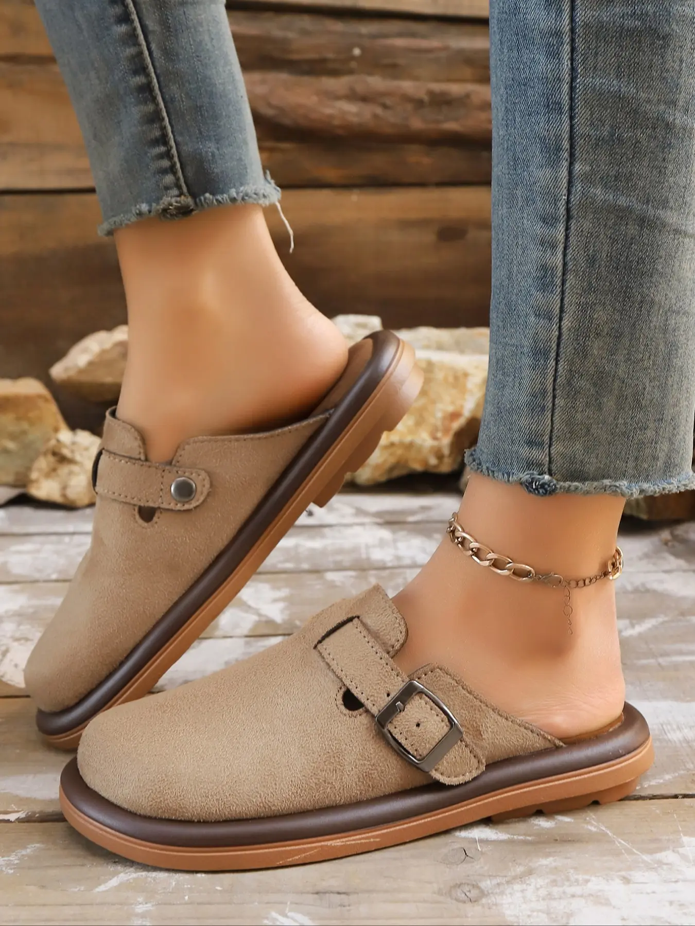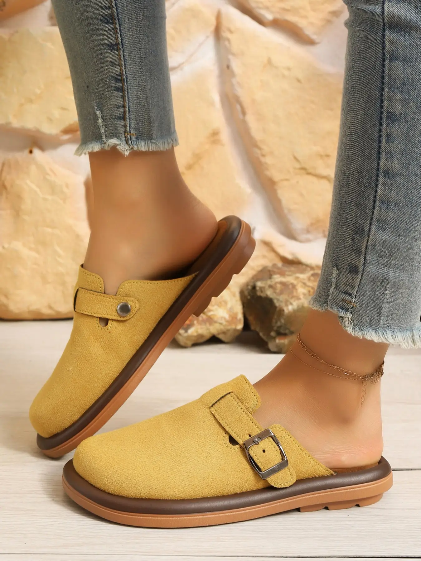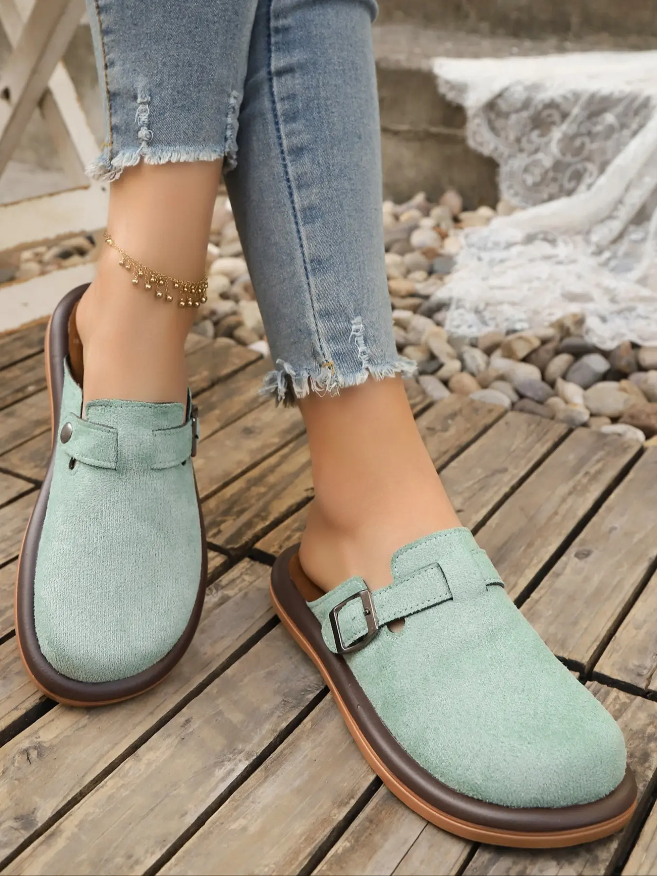 Women's Multi-Color Velvet Slip-On Shoes, Breathable Lightweight Clogs, Spring & Fall New Elegant Comfortable Large Size Single Buckle Anti-Slip Soft Sole