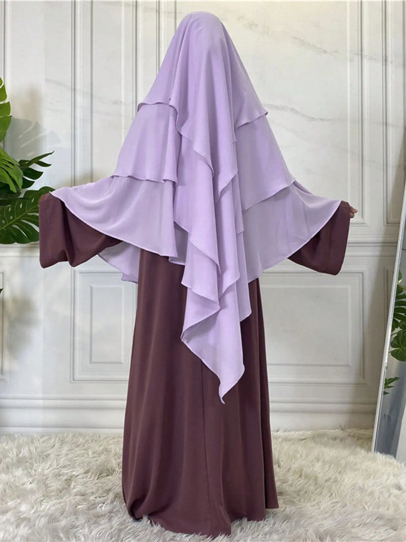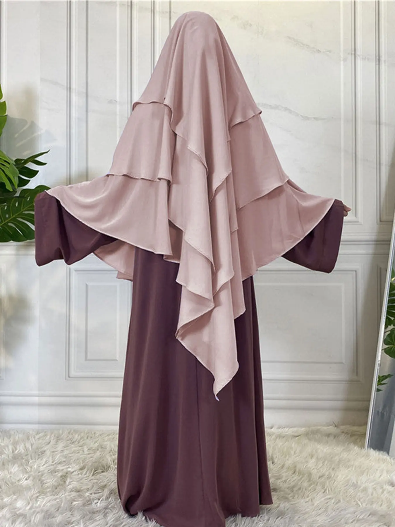 5. Women's Multi-Layer Plain Hijab Scarf, Soft Three Layers Khimar for Ramadan, Elegant Loose Prayer Shawl, Perfect Match for Long Robes