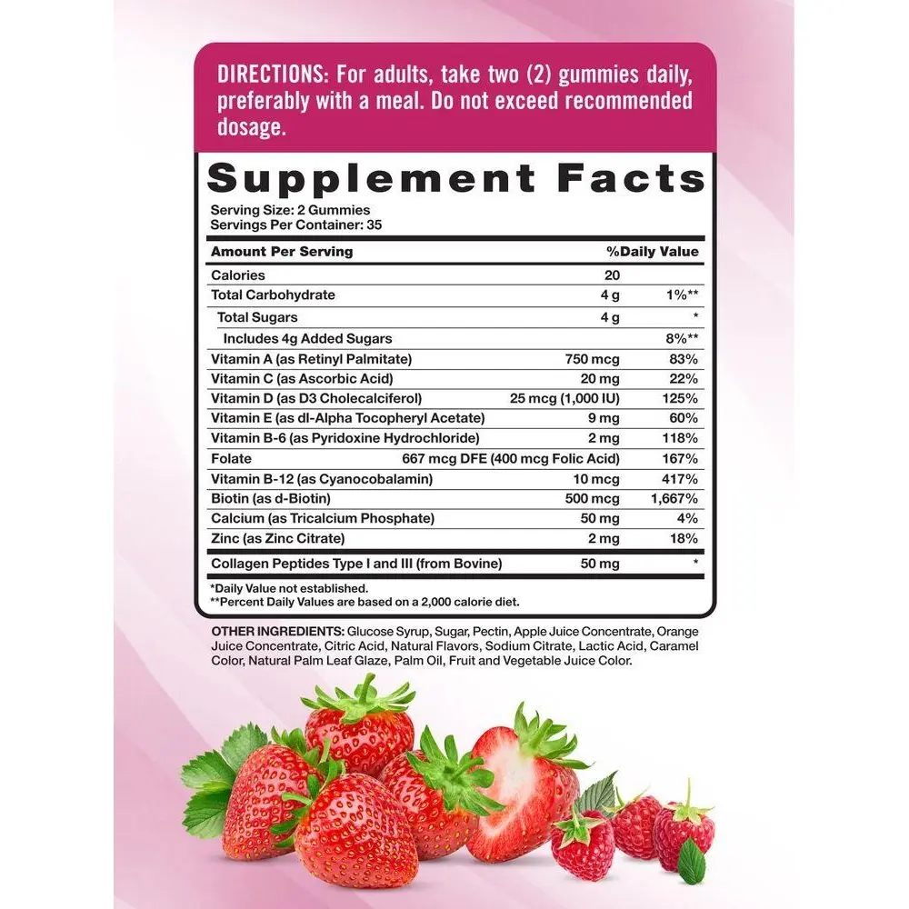 Nature’s Truth Women’s Multivitamin Gummies are a convenient way to reap the benefits of an array of vitamins and minerals in one easy-to-take formula. Each serving contains a blend of 10 vitamins and minerals in delicious mixed berry-flavored gummies. Formulated specifically for women, these gummies include collagen – a favorite ingredient among beauty supplements.