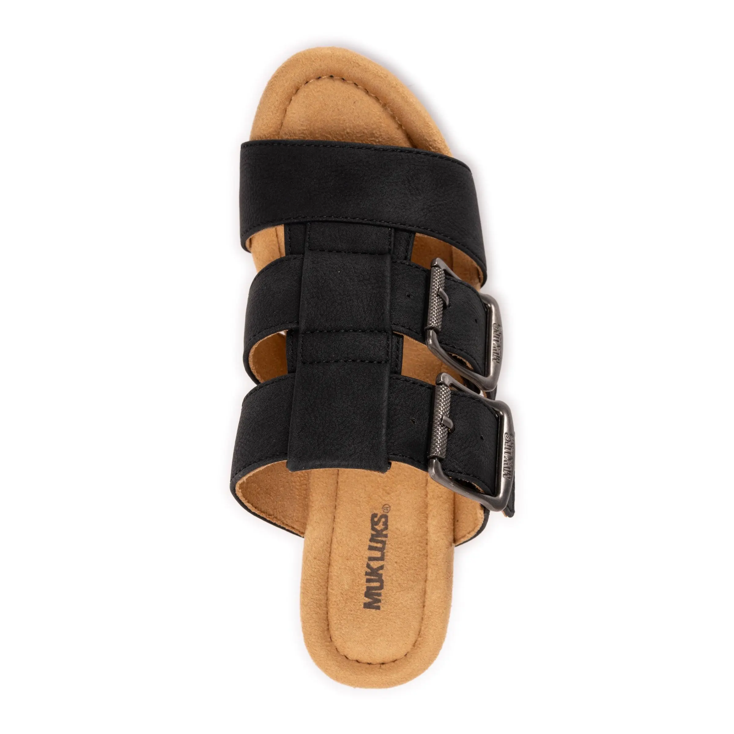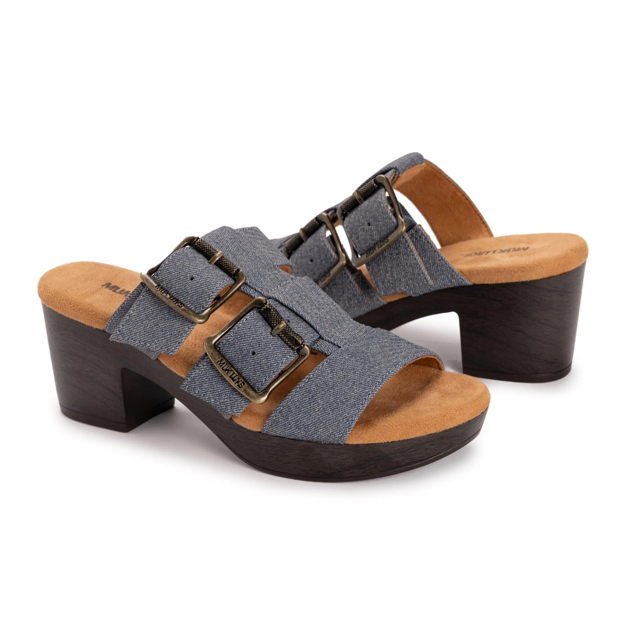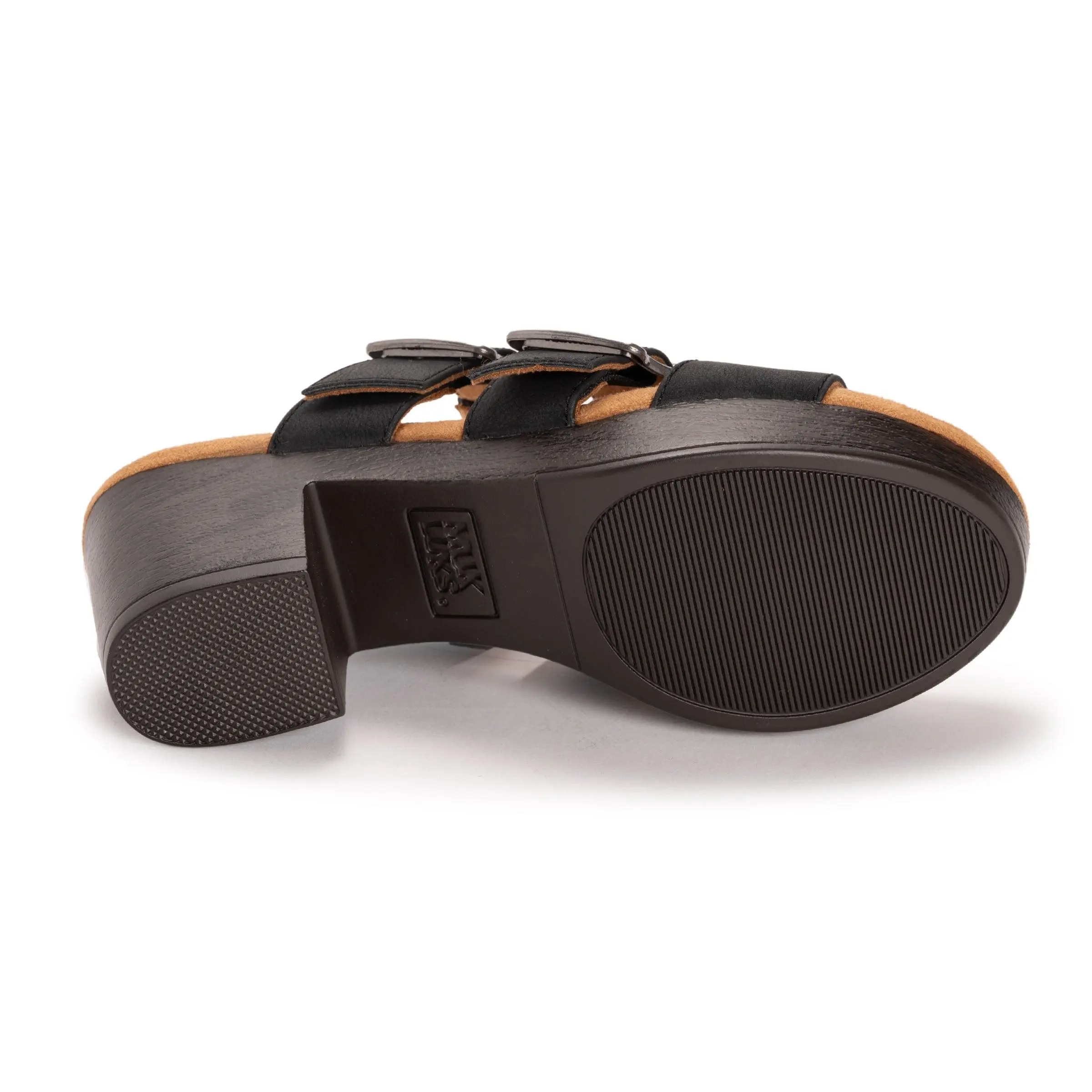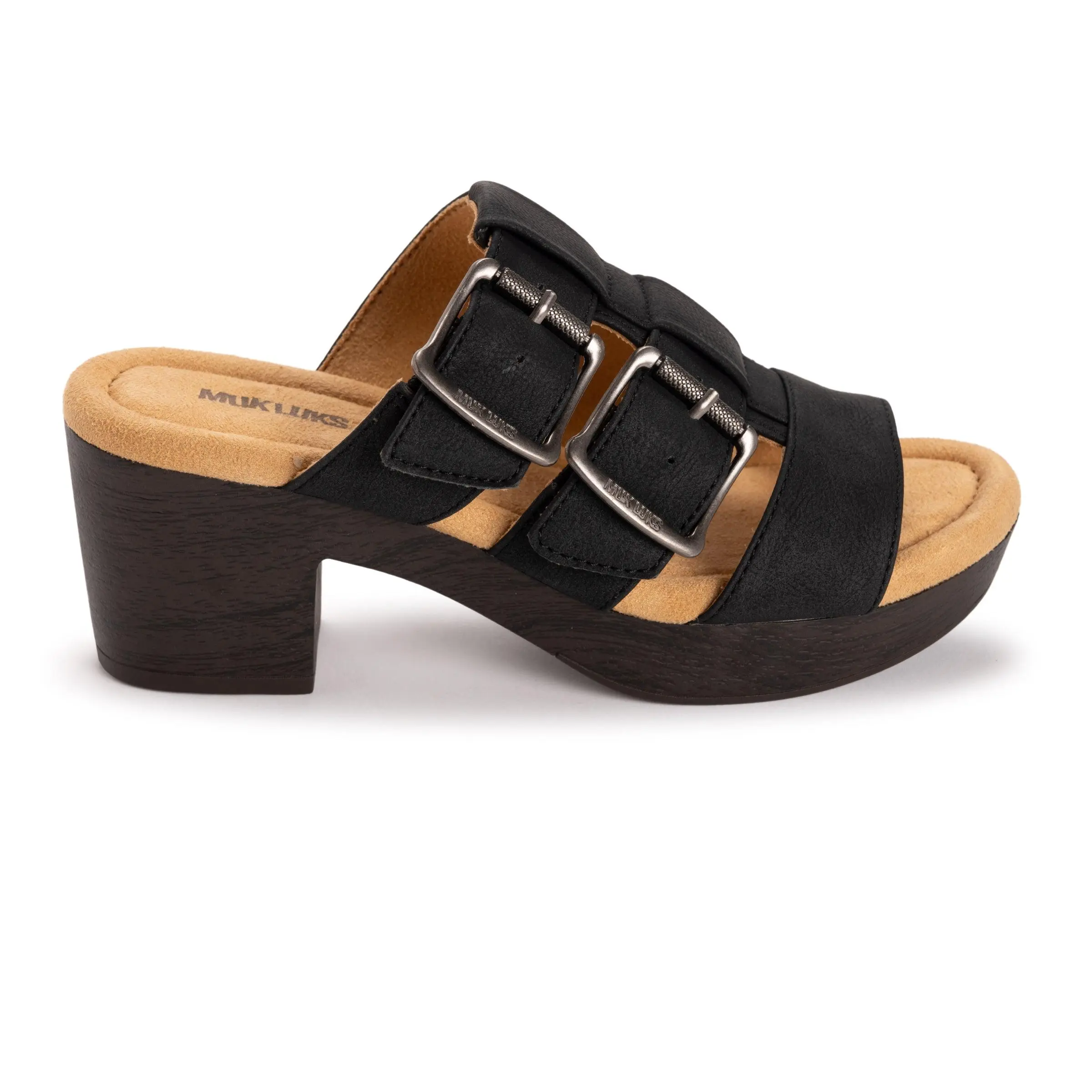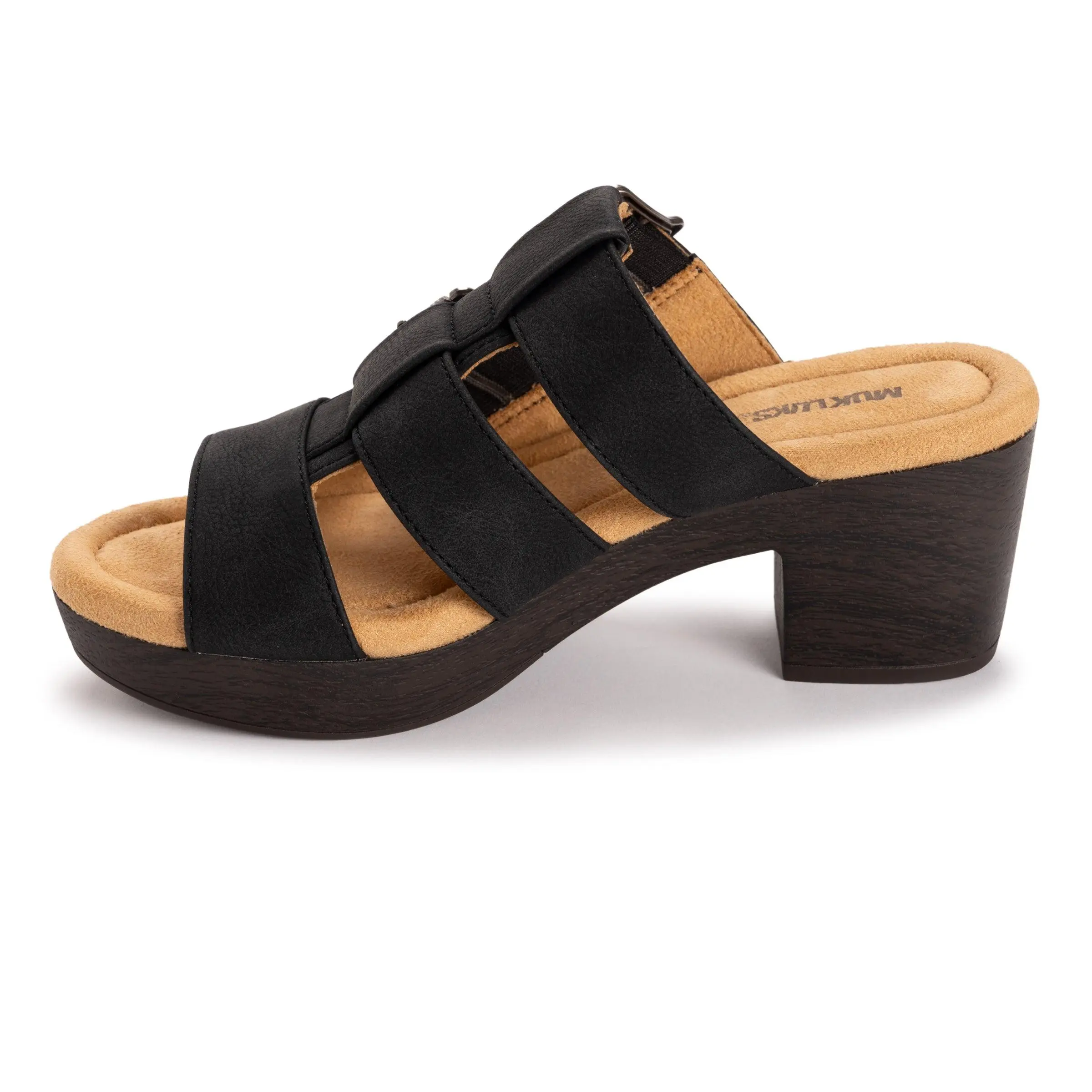 Step up your style with the MUK LUKS® Myra Sandal, designed for effortless comfort and chic appeal. Featuring solid colors and bold buckle accents, this sandal offers a “set-and-forget” fit with hidden gore for easy flexibility. The cushioned memory foam footbed ensures all-day comfort, while the stylish block heel adds just the right amount of lift. Perfect for pairing with everything from jeans to dresses. Wipe with a damp cloth to clean, no bleach, air dry.