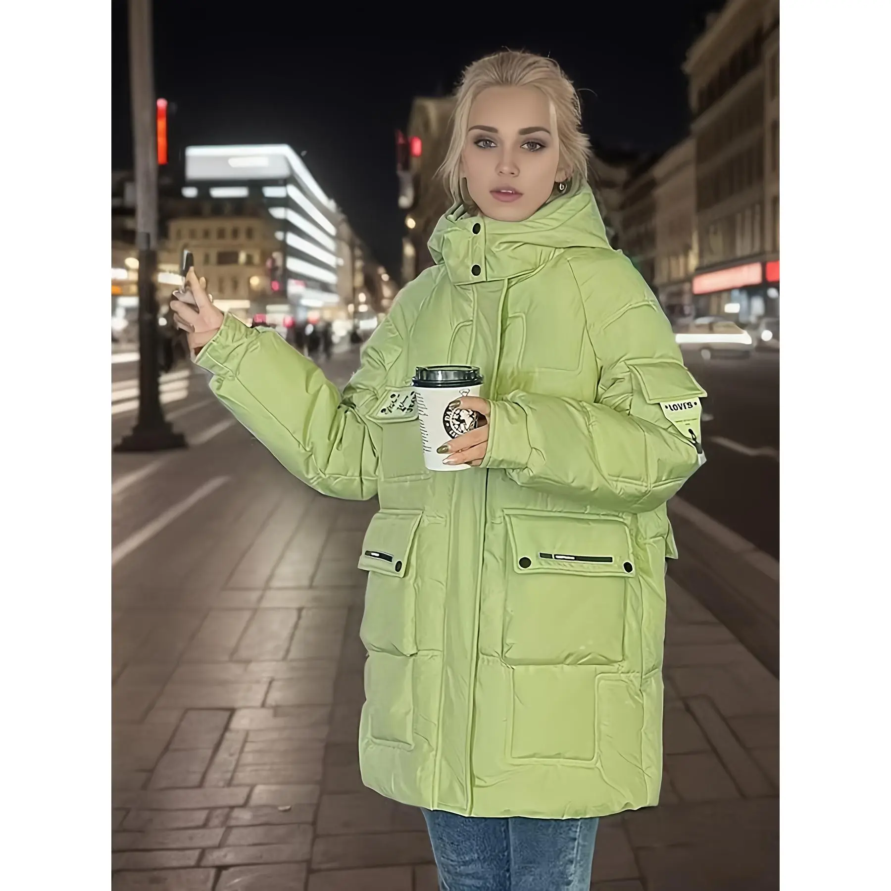 5. Women's Neon Green Winter Jacket - Thick Windproof Coat with Hoodie-like Collar, Mid-Length Warm Outerwear for Women, Casual Outerwear, Warm Coats For Women, Warm Coats For Women Long, Very Warm Winter Coat For Women, Warm Coat For Women, Warm Winter Coat