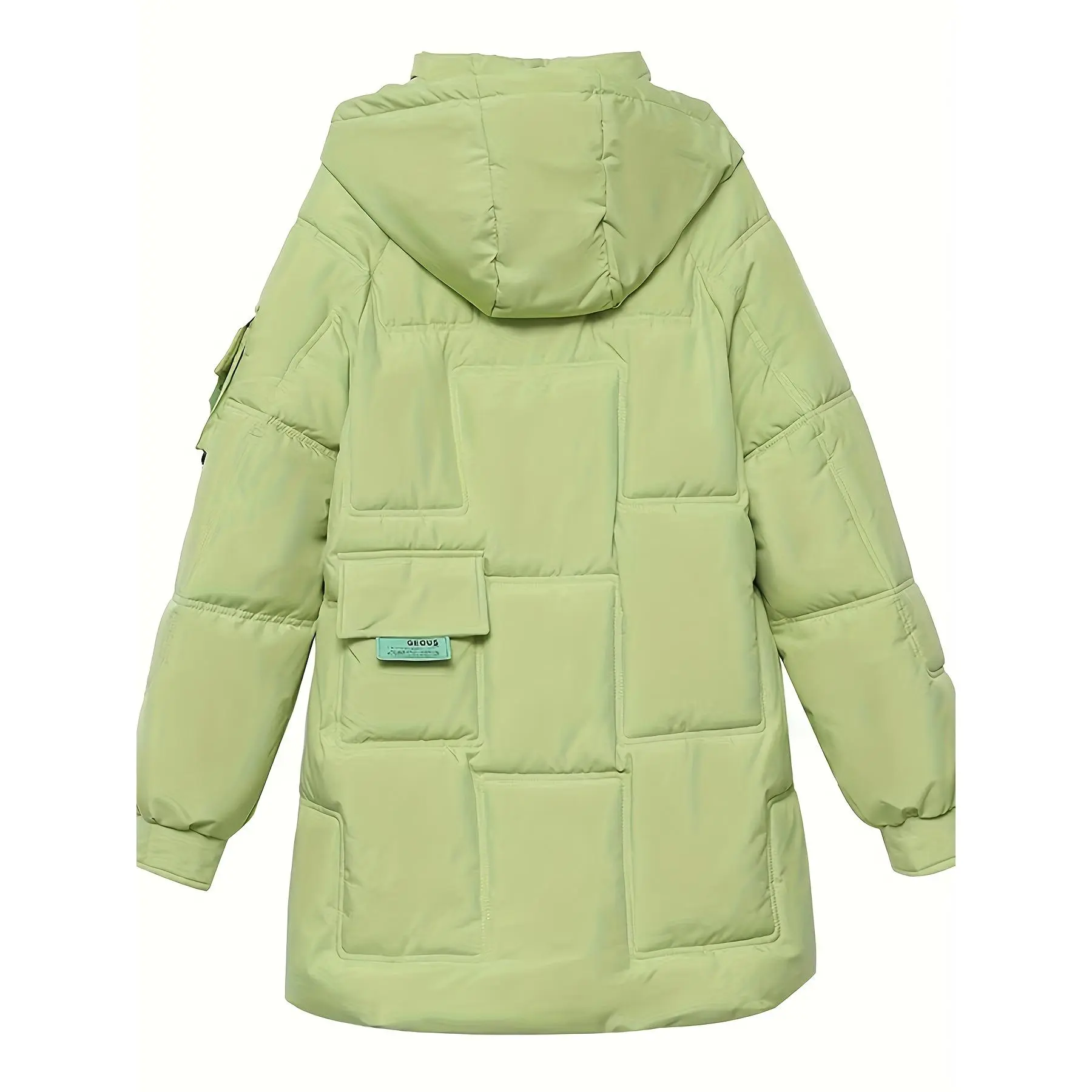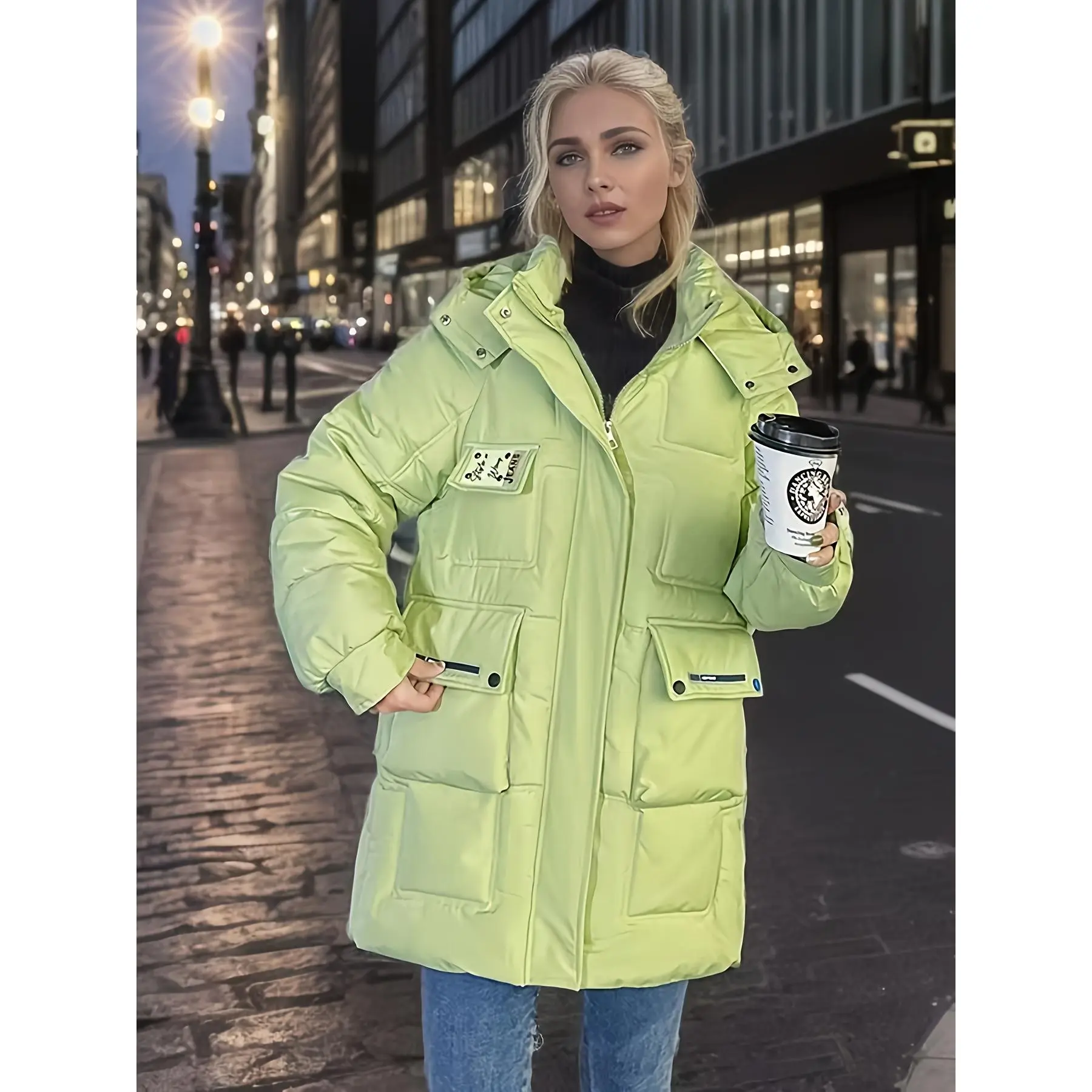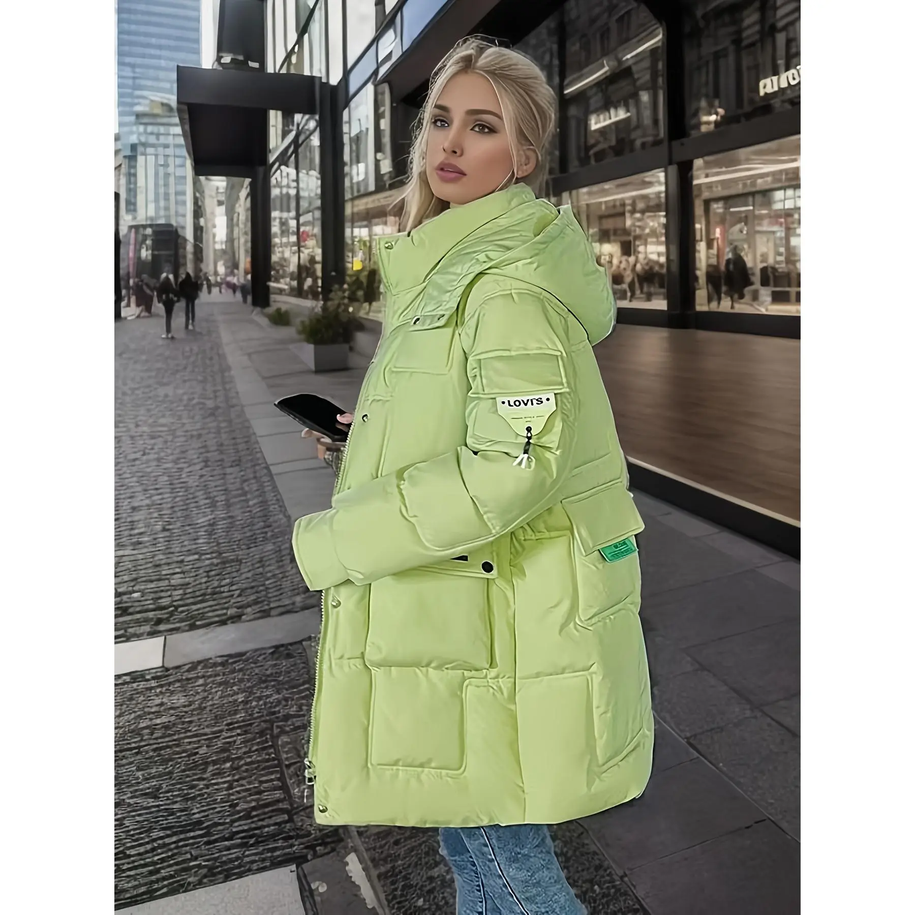 Women's Neon Green Winter Jacket - Thick Windproof Coat with Hoodie-like Collar, Mid-Length Warm Outerwear for Women, Casual Outerwear, Warm Coats For Women, Warm Coats For Women Long, Very Warm Winter Coat For Women, Warm Coat For Women, Warm Winter Coat