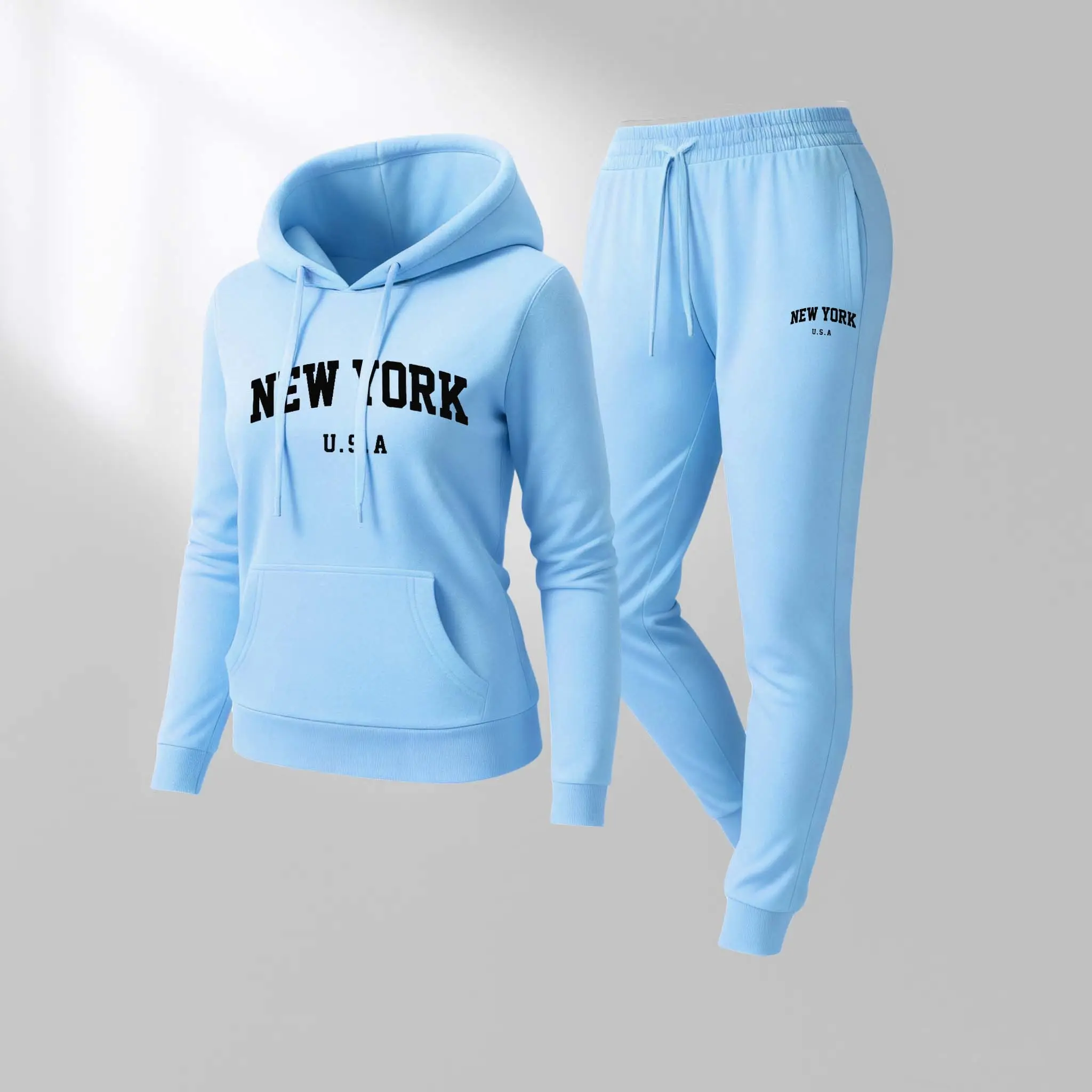 Printed Hoodie & Drawstring Sweatpants Set