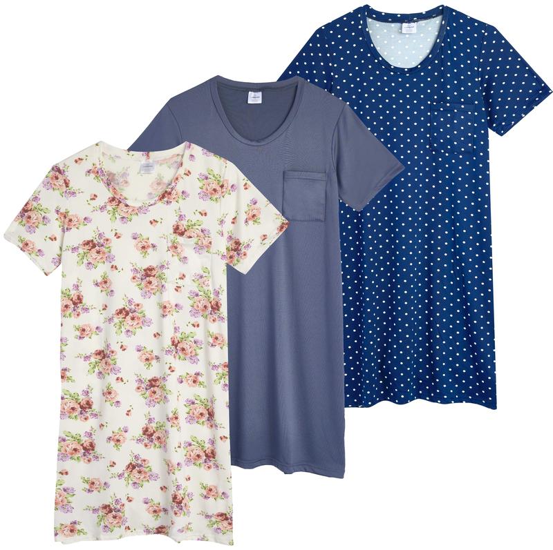 5. Real Essentials 3 Pack: Women's Nightshirt Short Sleeve Soft Nightgown Sleep Dress With Pocket (Available In Plus Size)