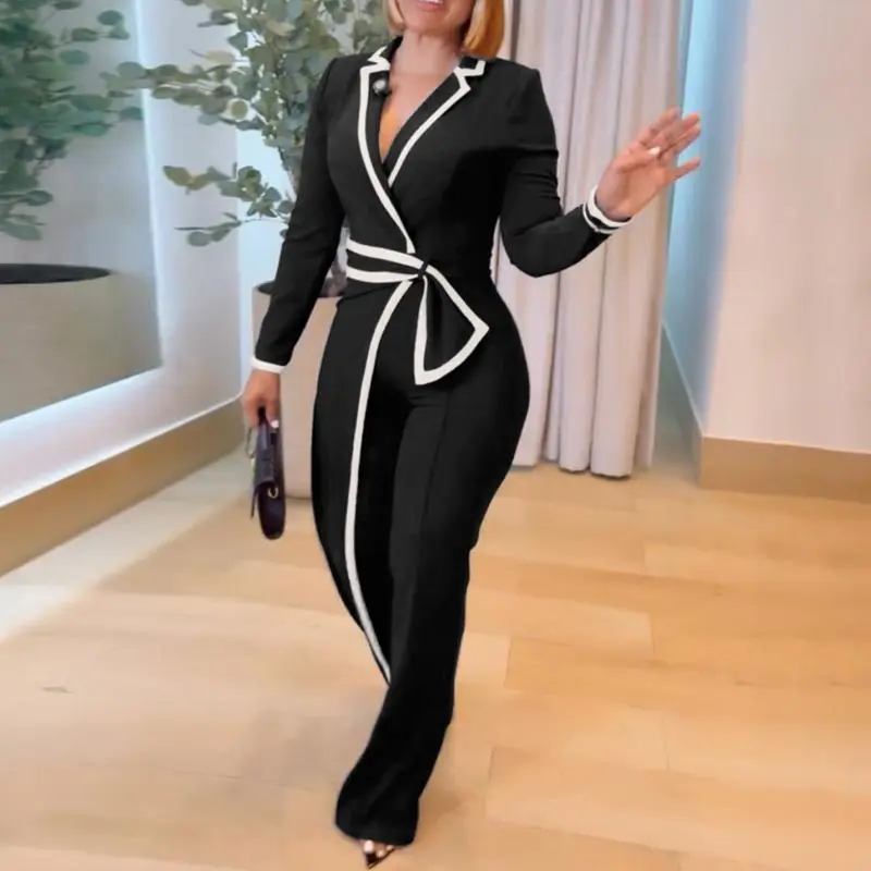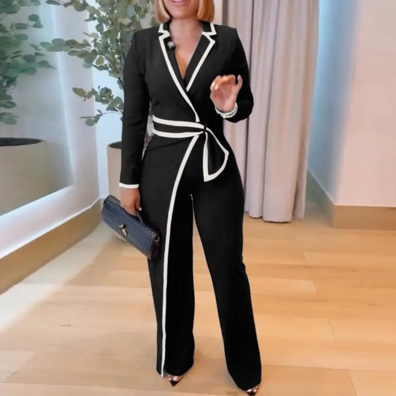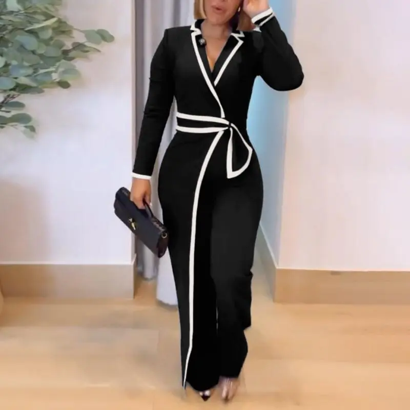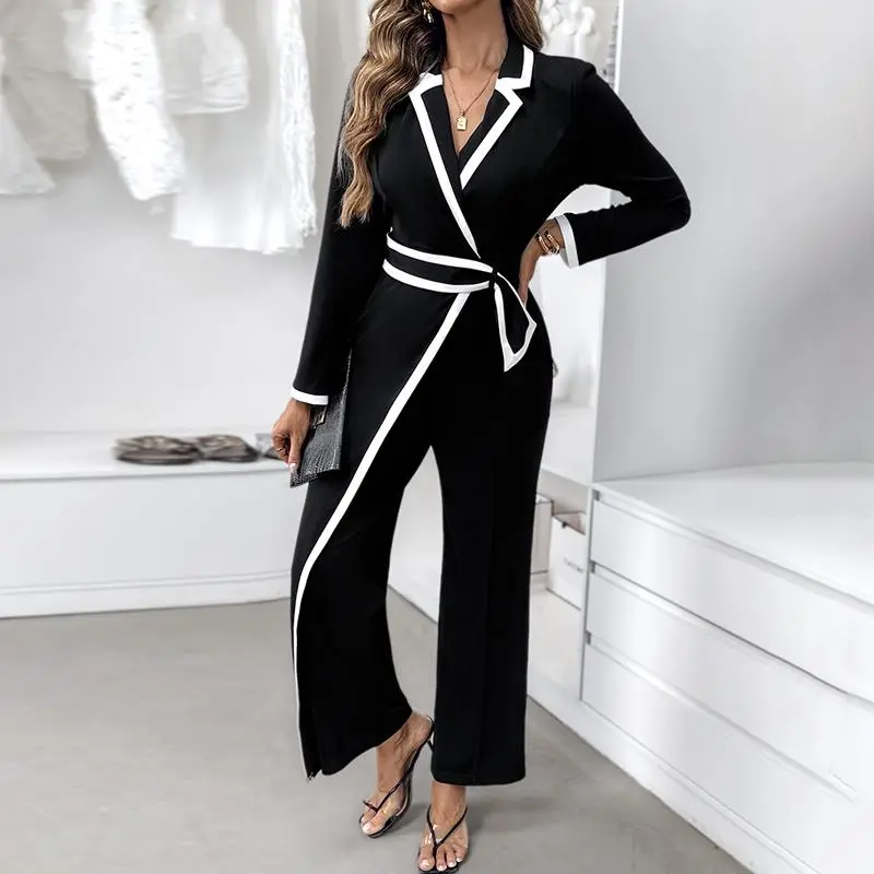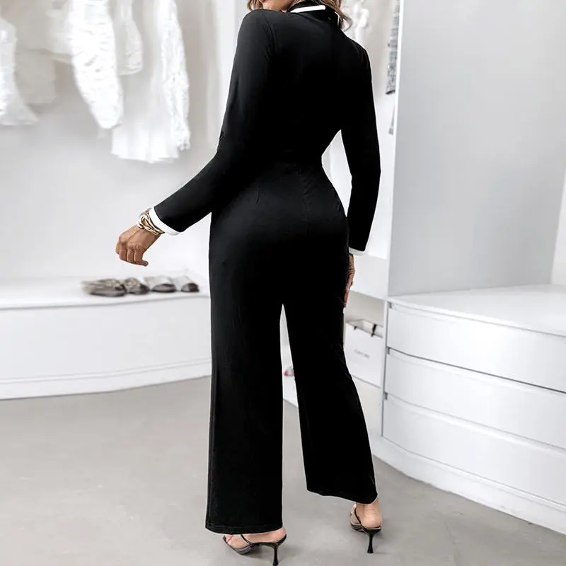 ·Notched collar – Sharp collar structure adds polish, balancing the jumpsuit’s relaxed drape for a refined office-ready look.