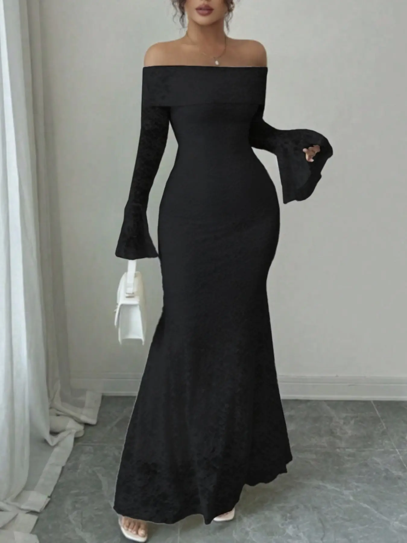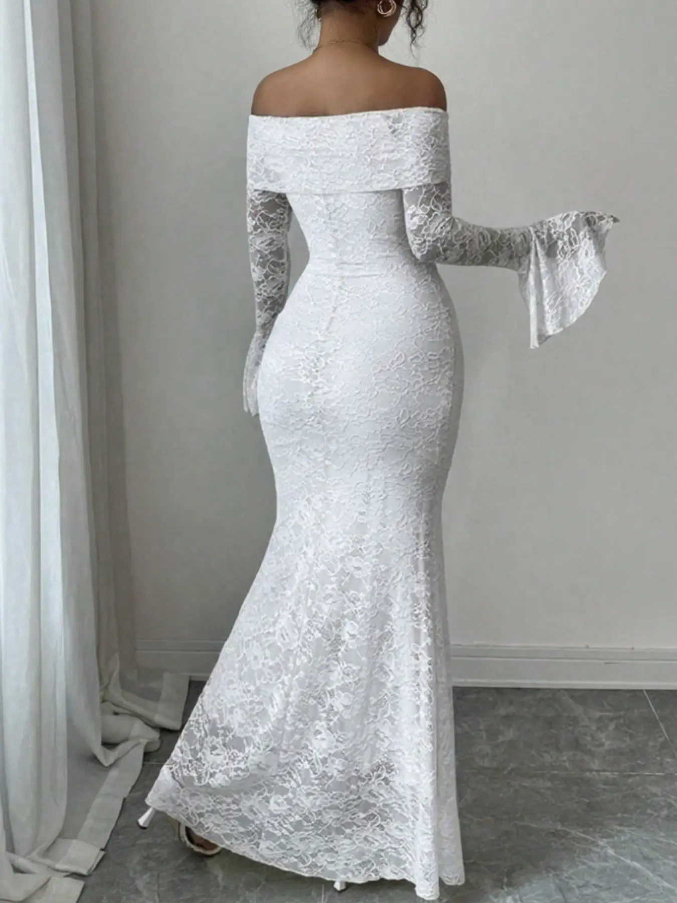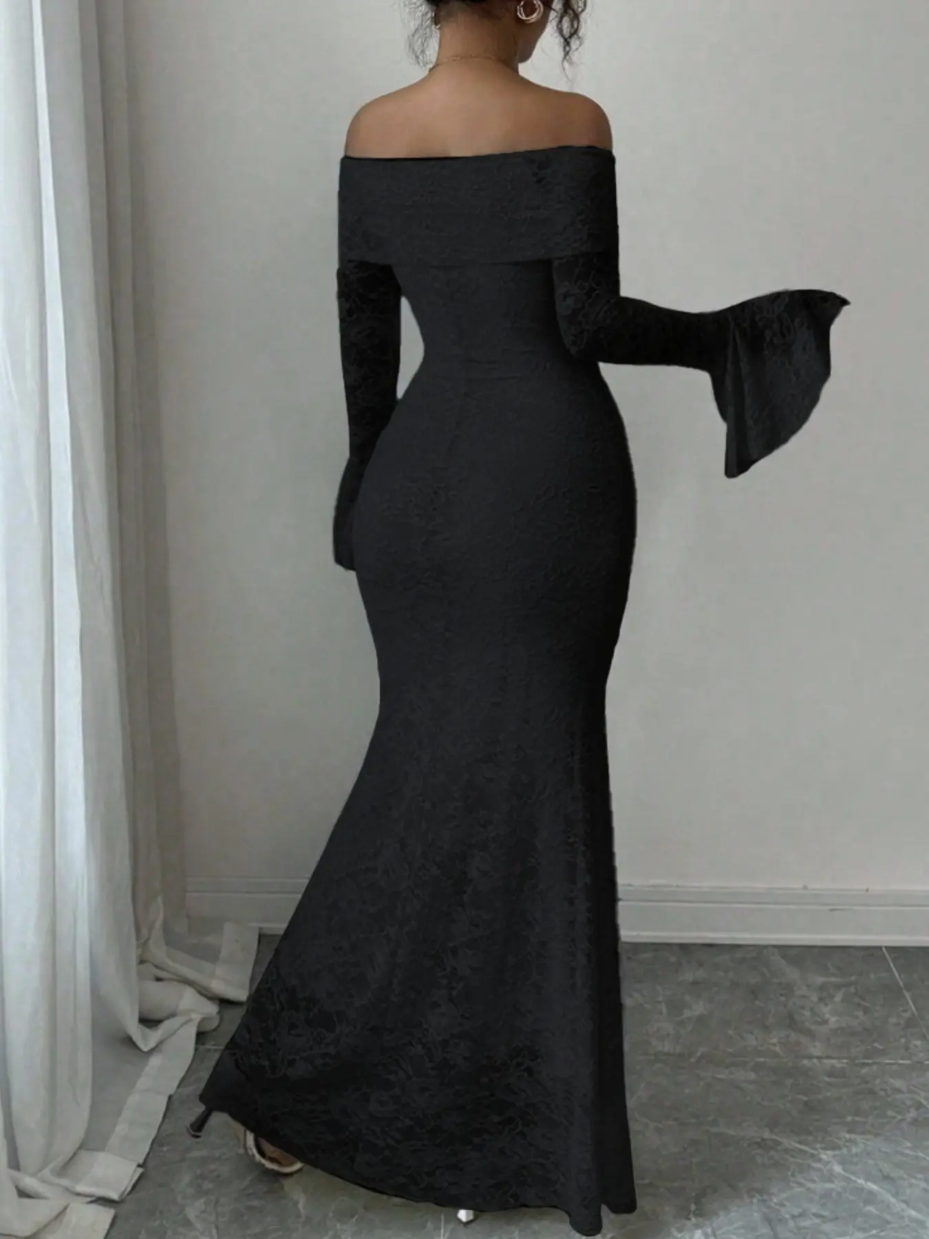 女性用ワンショルダーフレアスリーブボディコンロングドレス、レースマーメイドテールスカート、長袖、エレガントなパーティーウェア、夏用ファッション #sheinstyle #ミニワンピース #レディーススーツ #ladiesfashion #ニットワンピース #sheinクリスマス感謝祭 #sheinbigsalesday #에이블리옷추천 #skirtoutfits #ロングワンピース