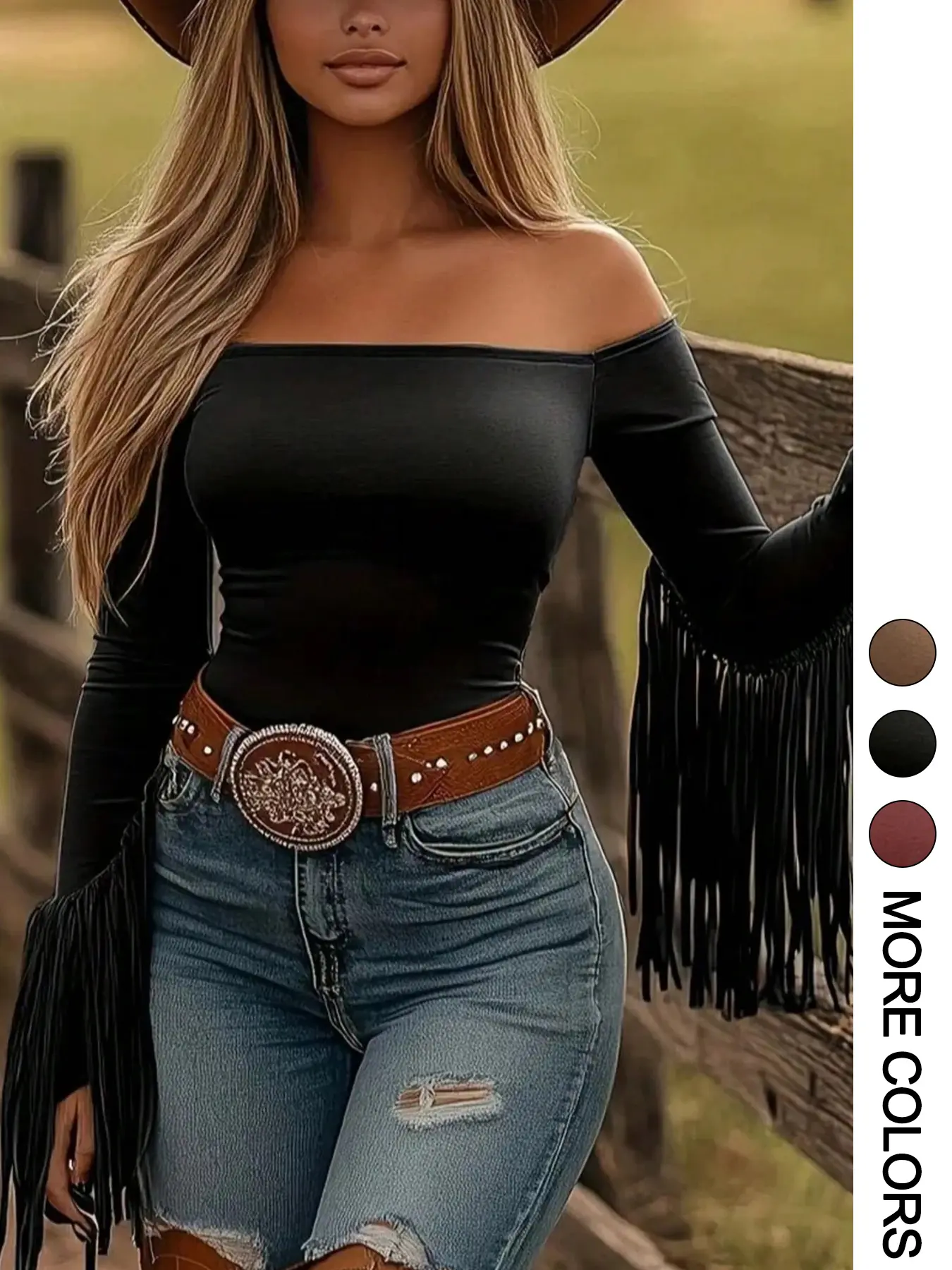 Super cute! Especially for a country concert with some boots. Love the fringe and off the shoulder look!