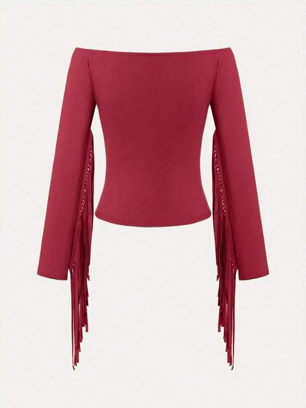 Do NOT machine wash this as the tag states to do. The fringe will end up in an absolute knotted mess. Took me half an hour to get it all undone. Otherwise, shirt is as advertised, fits true to size.