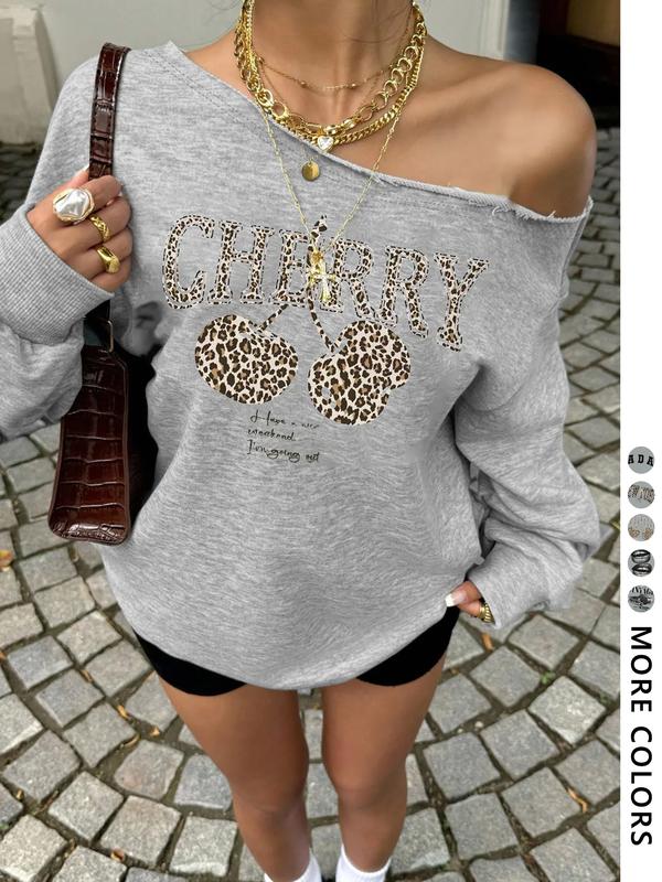 Women's Off-Shoulder Pullover Sweatshirt, Street Style Hip Hop Rapper Dance Biker School Fashion, Leopard Print Letter Design #TikTokShopBlackFriday #TikTokShopCyberMonday #spotlightfinds #ootd/  #clothing