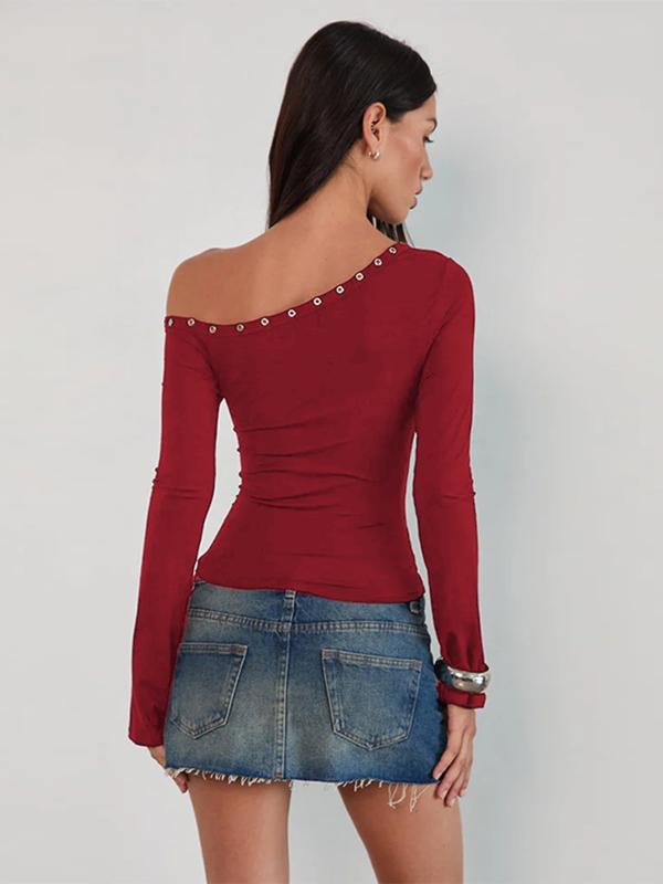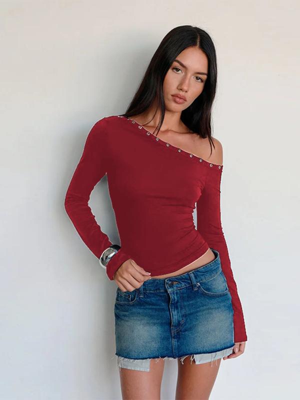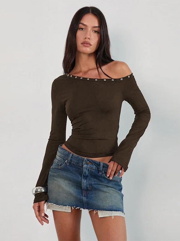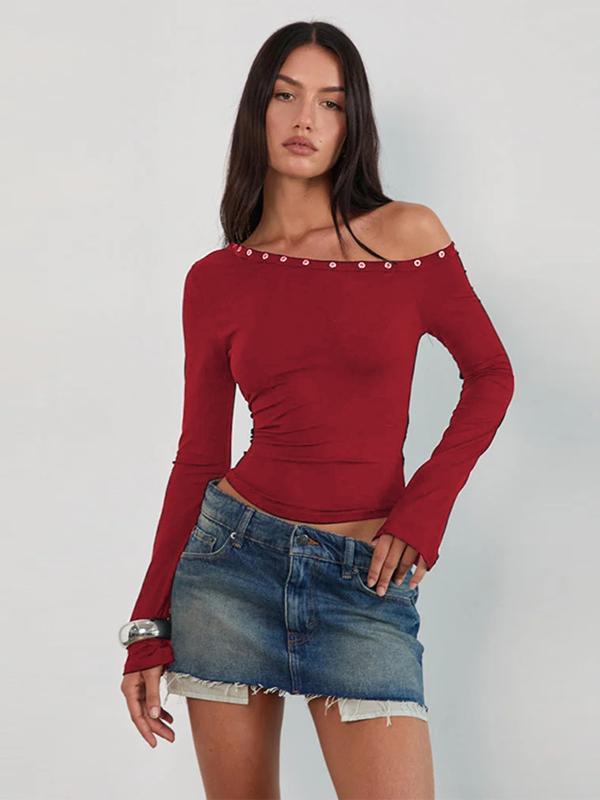 Women's Long Sleeve off Shoulder Top, Casual Knitted Fabric, Perfect for Spring & Fall Seasons, Stylish Design for Daily Wear, Basic Womenswear