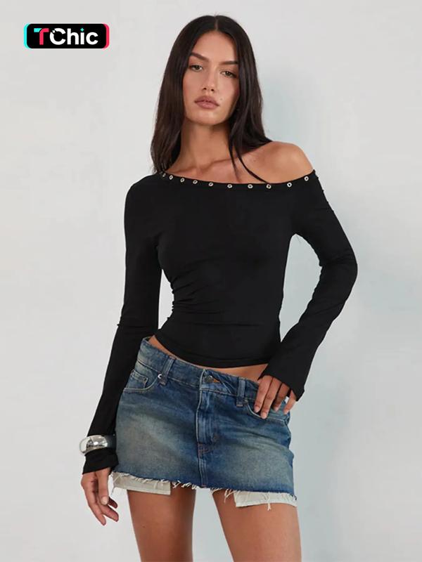 Minimalist style—pair it with any bottoms to showcase your unique fashion sense!💕#OffShoulderTop #MinimalStyle #spotlightfinds #tiktokshopblackfriday  #tiktokshopcybermonday