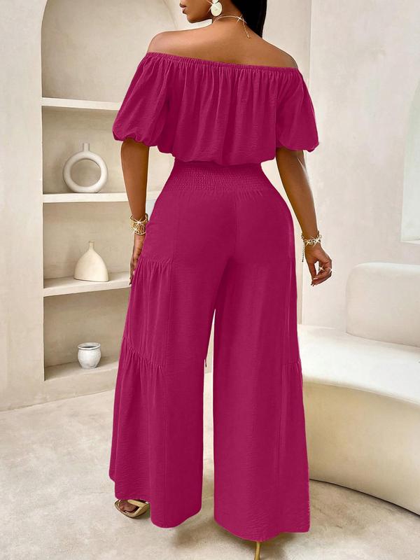 Women's Solid Color Top & Wide Leg Pants Set, Casual Off Shoulder Top & Palazzo Pants for Summer, Ladies Clothes for Beach Holiday Vacation, Womenswear
