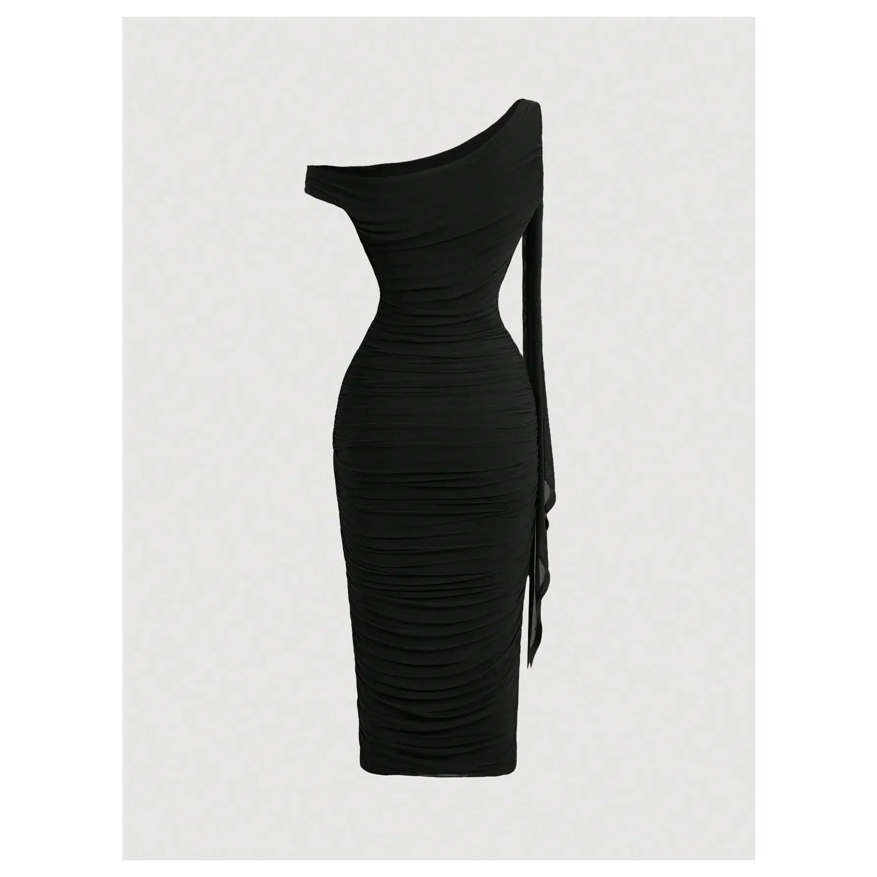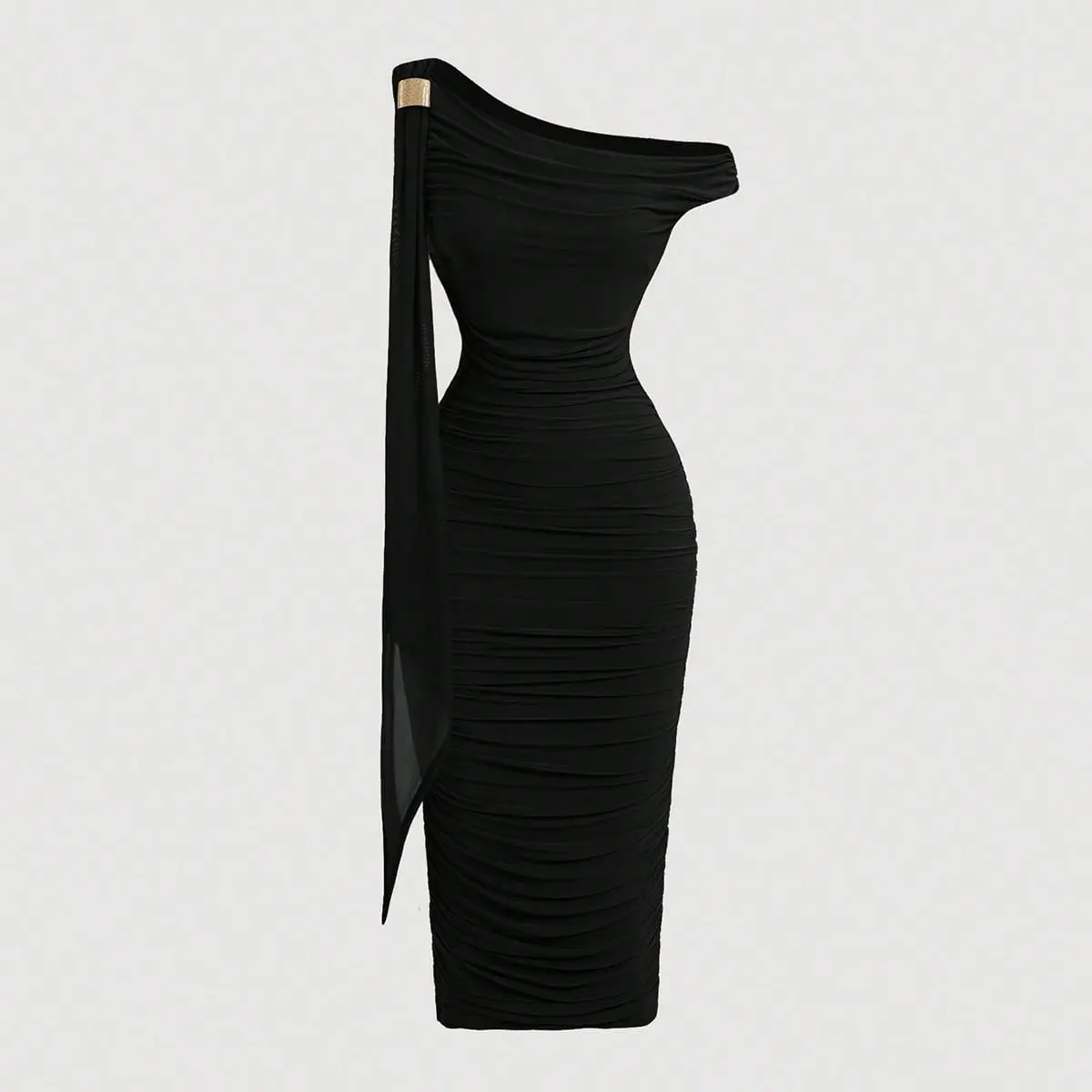 ·Feature: Elegant dresses for women, asymmetric neck, off the shoulder, metal decor, sleeveless, midi bodycon dresses for women, slim fit, fashionable