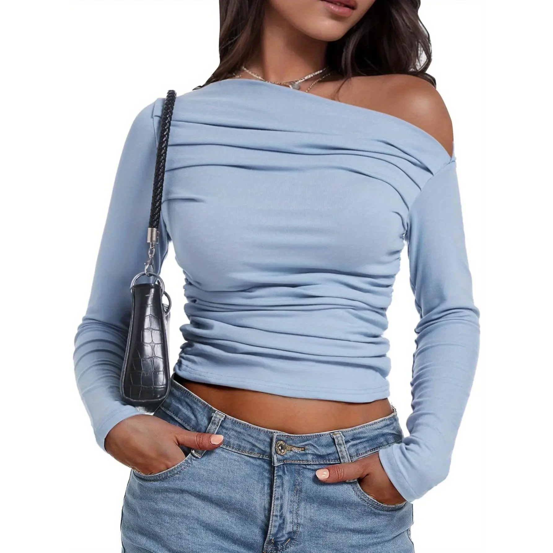 Women's Long Sleeve Crop Top One Off Shoulder Slim Fit Going Out T Shirts