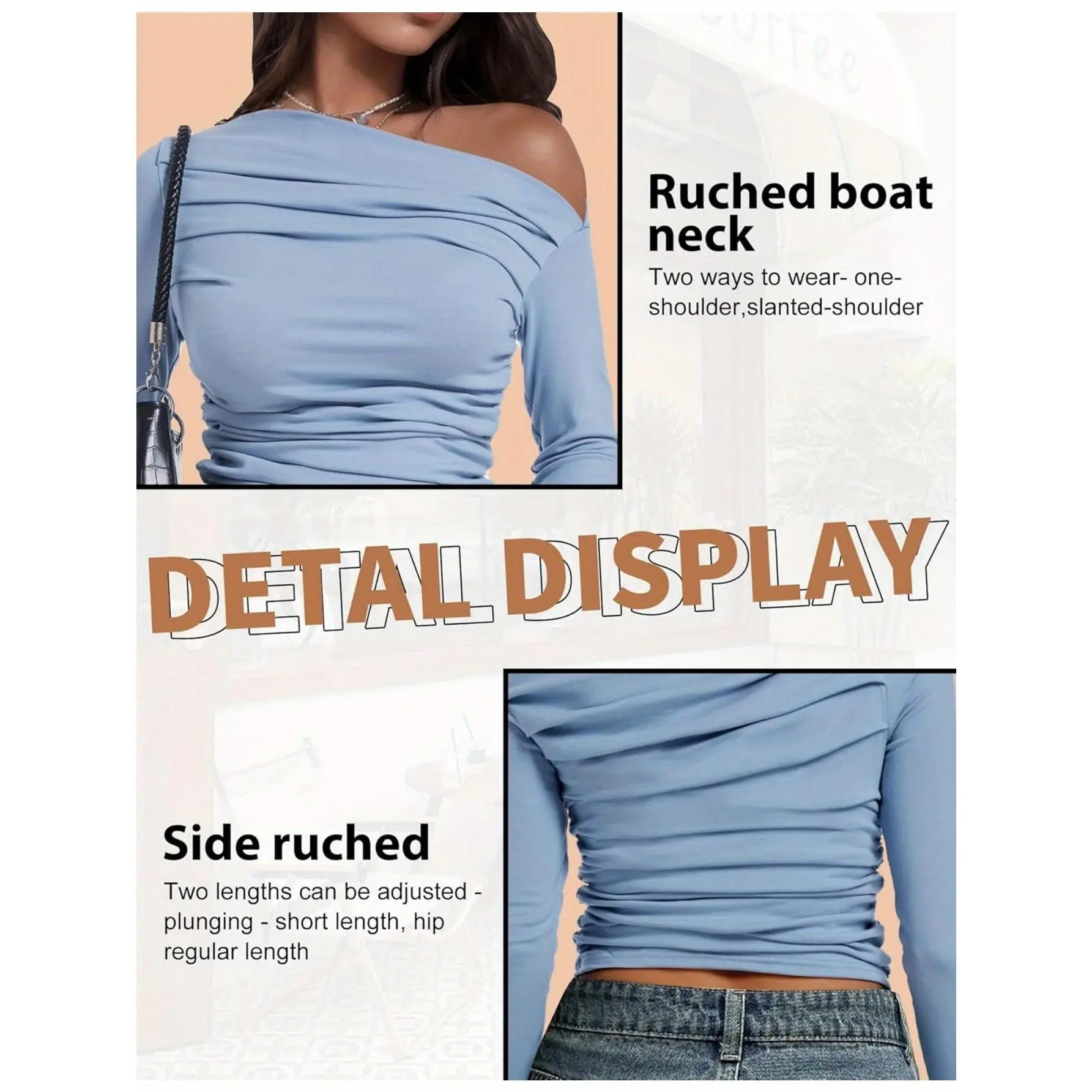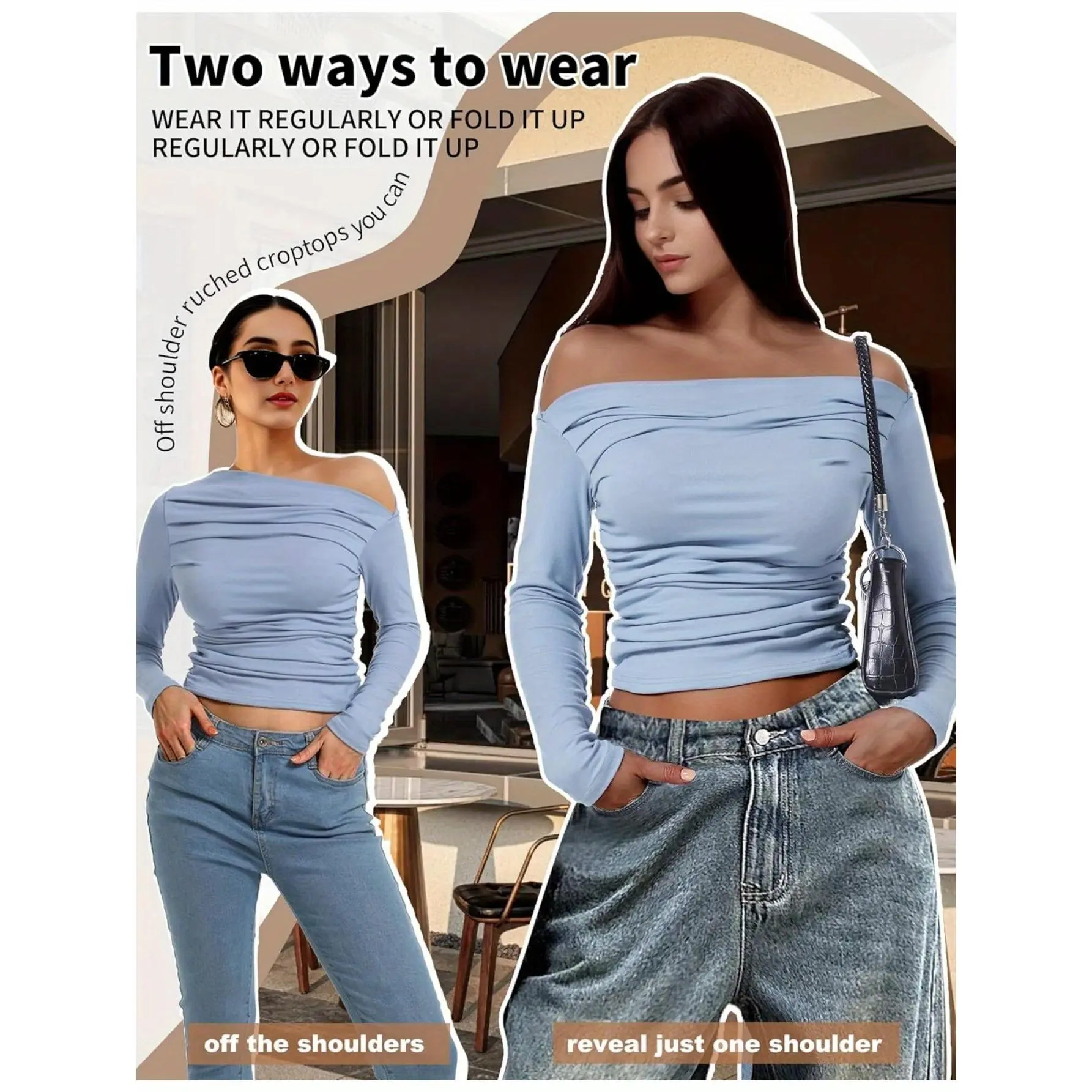 With a flattering boat neck and elastic material, you can choose to wear it off the shoulders or just one shoulder.
