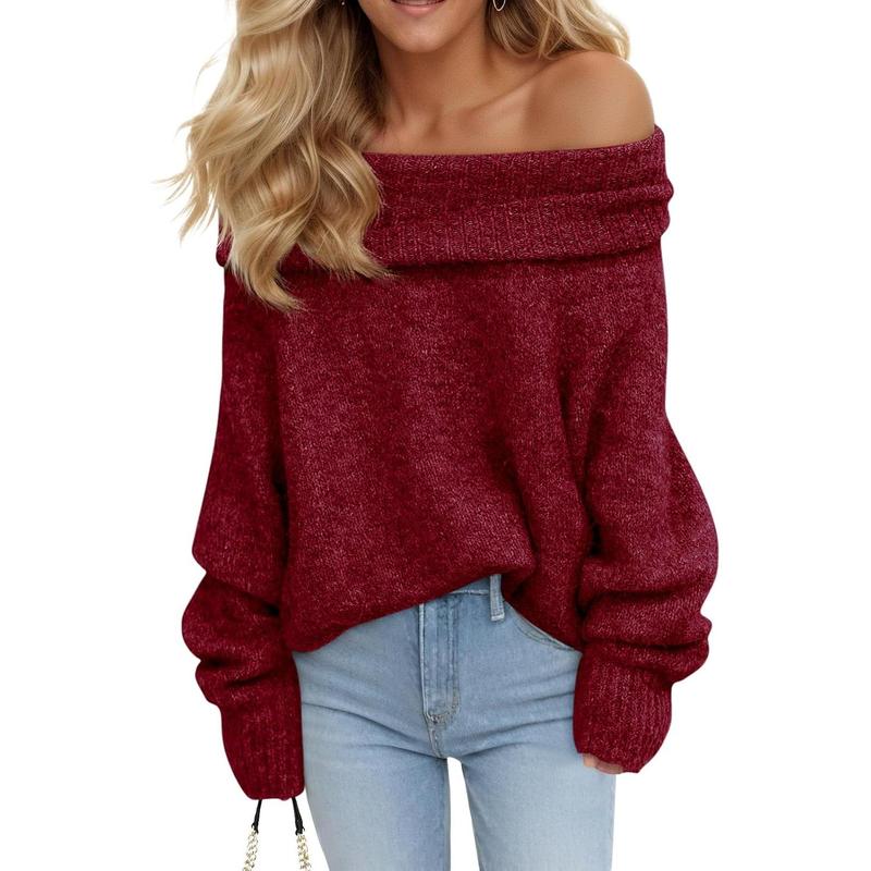 Saodimallsu Womens Fall Fashion Off The Shoulder Long Sleeve Sweater
