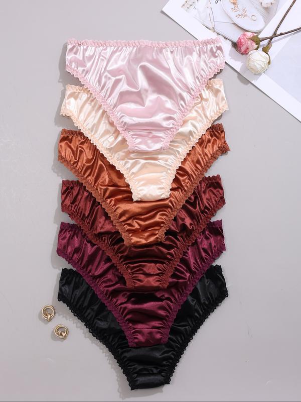 Women's Oil Cloth Bow Lace Trim Comfortable Triangle Panties, Trim Lace Panty, 6 Pack Soft Underwear for Women, Casual Daily Wear