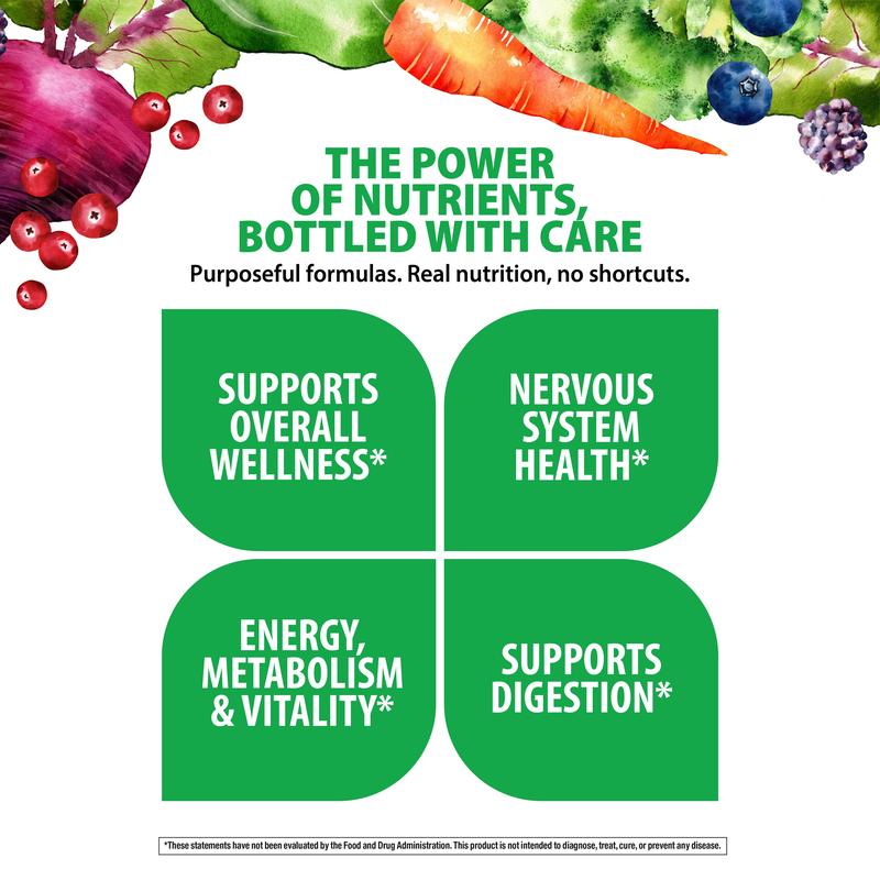 One vegetarian caplet each day supports overall wellness, energy metabolism, normal heart function, and healthy brain function.* For more than 40 years, Rainbow Light has been trusted by millions, delivering bio-balanced supplements made with real food nutrients to help you shine from the inside out.*