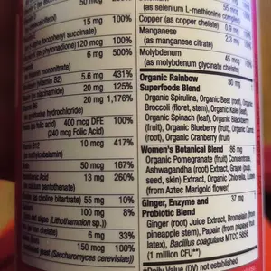 Our formula stands out with its Rainbow Superfoods Blend, featuring spirulina, beet, broccoli, kale, spinach, and other wholesome nutrients; a Women’s Botanical Blend consisting of pomegranate concentrate, ashwagandha extract, and more; and enzymes and probiotics for additional support.*