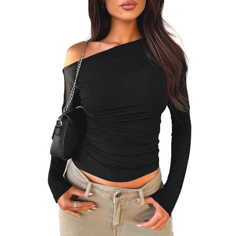 Womens One Off Shoulder Tops Long Sleeve Going Out Shirts 2025 Boat Neck Ribbed Slim Fit Blouse  Y2K Tight ShirtsWomens One Off Shoulder Tops Long Sleeve Going Out Shirts 2025 Boat Neck Ribbed Slim Fit Blouse  Y2K Tight Shirts
