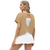 GRECERELLE Women's Open Back Workout Tops Backless Athletic Shirts Casual Crop Running Tee Y2k Yoga