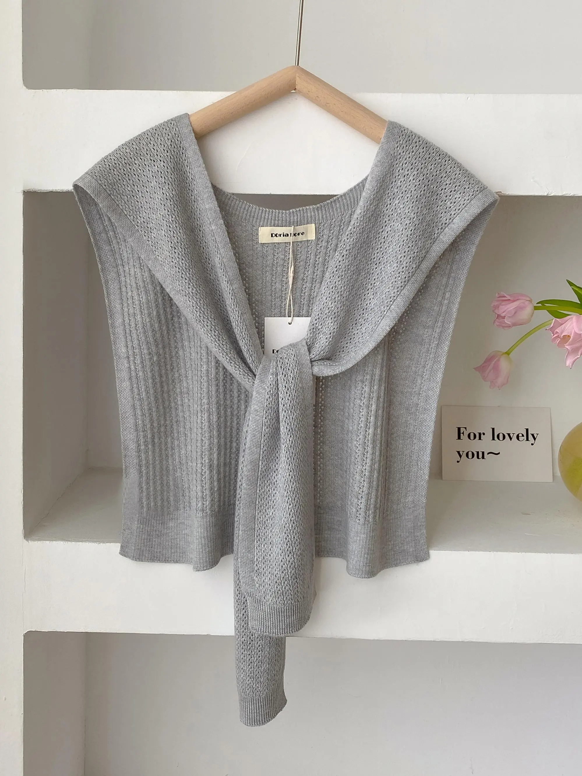 Women's Solid Color Open Front Cape Cloak Sleeve Knit Shawl, Casual Versatile Scarf for All Seasons, Fashion Knitwear Accessories for Women & Girls, Tops, Womenswear