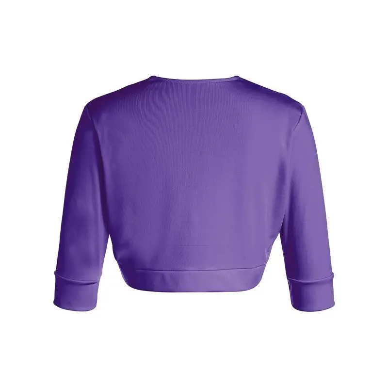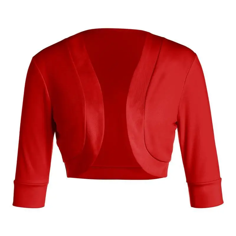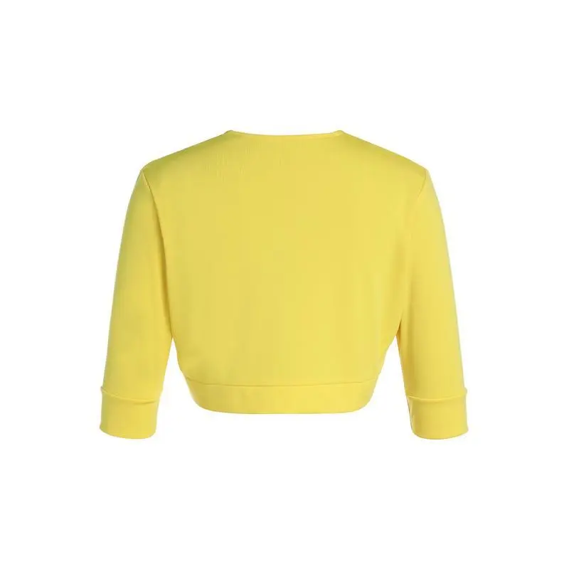 Women’s open-front placket short jacket with 3/4 sleeves, basic placket design; suitable as a sports jacket or wool sweater for business-casual wear in spring and summer; available in yellow, purple, white, black, and red; sizes S–XXL.